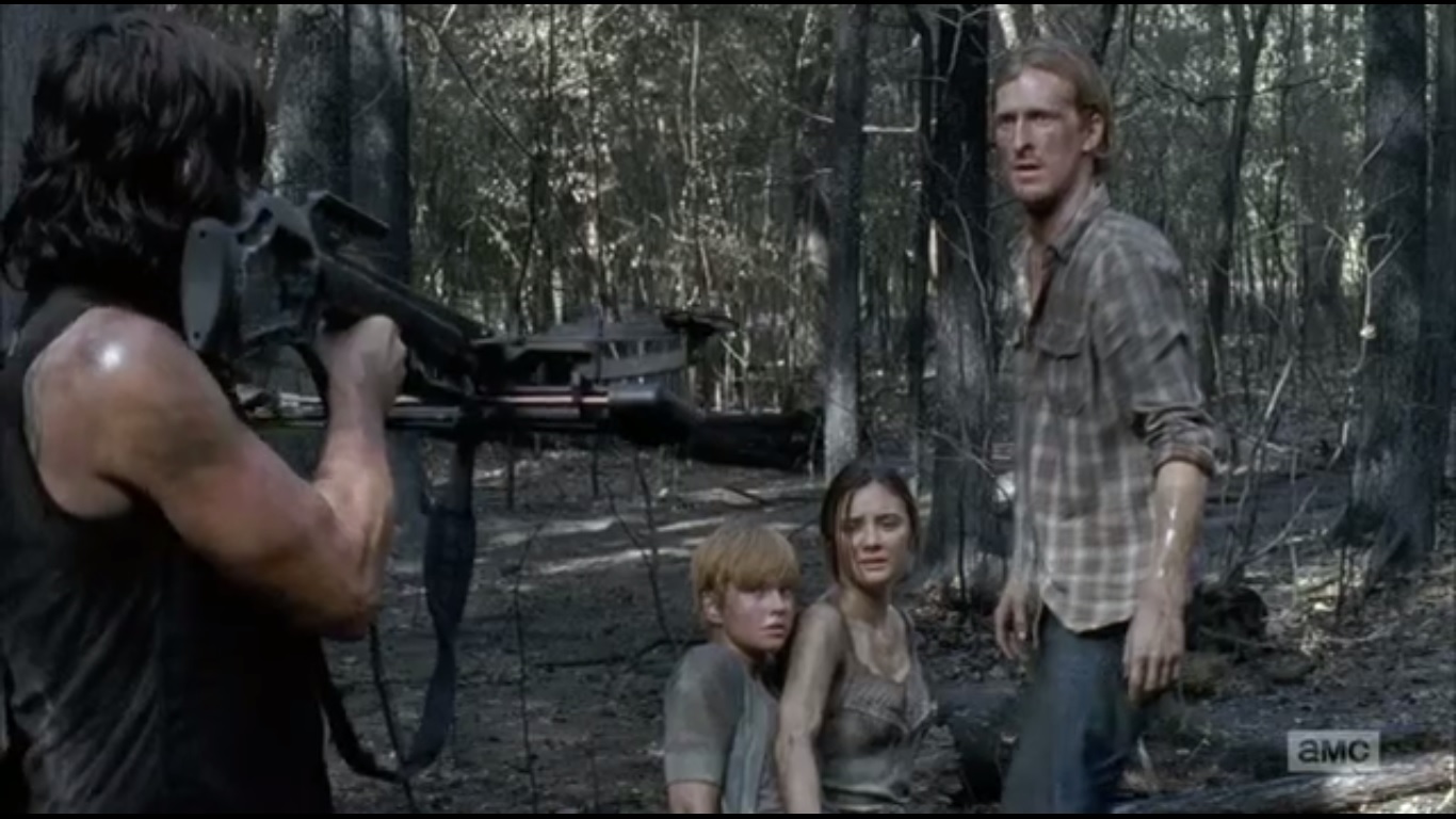 My only issue is that I feel Daryl was written without the full extent of his survival skills and abilities. He spends so much time trying to fish out his crossbow that it was laughable. He could easily have just run off for a bit to gain some distance, but to struggle with it until the last second was ridiculous. And again, even if he is a caring individual, he should have held onto that gun until he knew that the two weren’t an immediate threat.