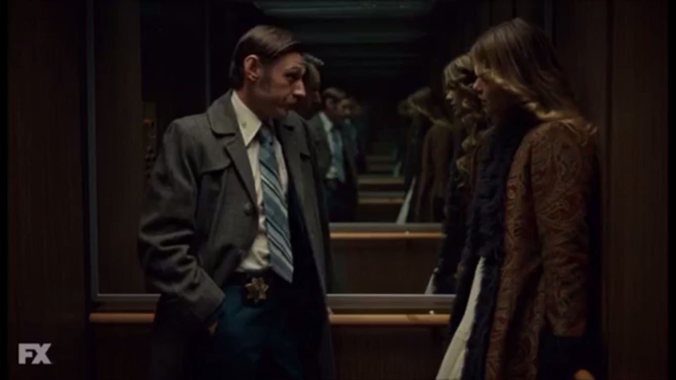 At the police station in Fargo, Ben’s superior, Chief Gibson, played by Terry Kinney, asks Lou, Ben, and Hank why Floyd Gerhardt is in holdup. To be frank, Schmidt and Solverson are tired of playing clean-up. Lou, Ben, and Hank want to ratchet up pressure on both sides and let them know that these killings aren’t going unnoticed. As for the butcher, there’s an APB out on Ed and Peggy Blomquist, but neither has turned up yet. Ah, so Hank didn’t check on her after all.