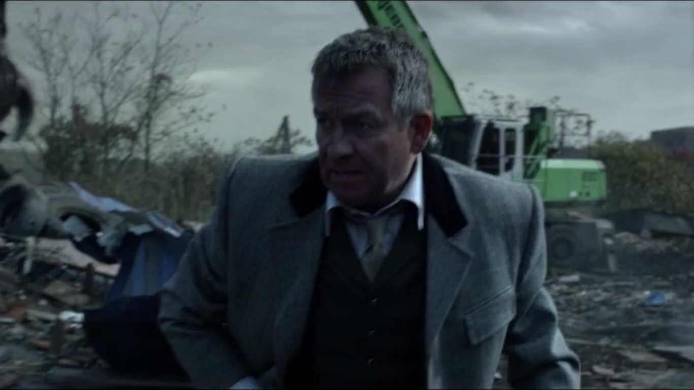 The episode begins at the dump. Alfred stumbles through the trash yard- I’m guessing no one is bothered by a live man emerging from a garbage truck- and flees with Tabitha and some goons on his heels.