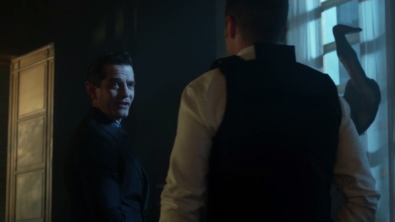 The three talk to Alfred, who was trespassing on Galavan’s property. Barnes acknowledges that GCPD already jumped the gun once and doesn’t need to get wrung out again. Maybe they can get a backdoor warrant tomorrow morning, and that’s the best they can do for now.