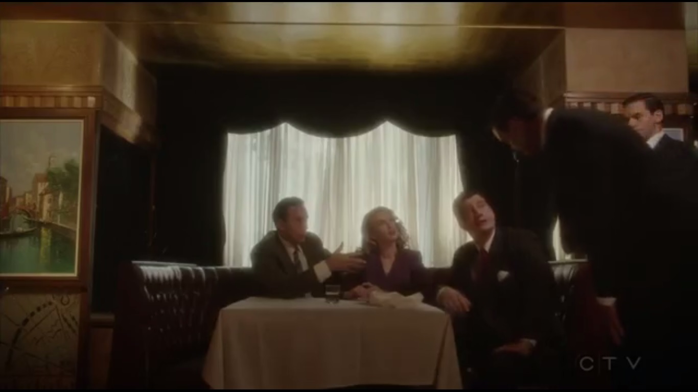 It was funny to see Hugh Jones remember over and over that he already met Peggy, though the memory joke wore off after the first few attempts. At that point, the show just ran the joke into the ground. I just don’t think the tone was properly balanced, given the situation. At least the slow motion walk wasn’t overplayed.
