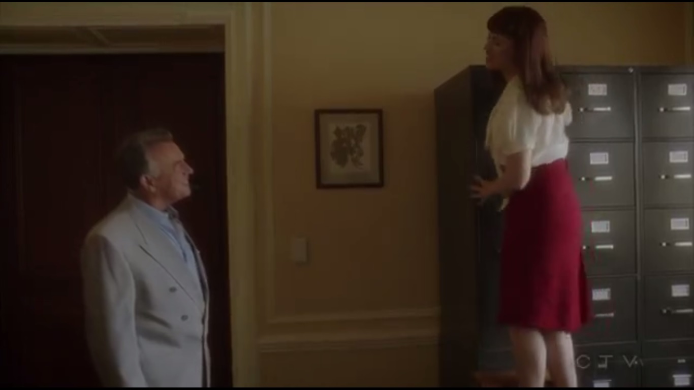 Jarvis and Peggy break and enter the facility. Jarvis gets to join in because he’s got his recreation tie. The two crawl through the shafts and find the storage room housing Jane Scott’s body. Before the two can drop down, Calvin and Whitney conveniently enter, Whitney claiming that the body called her. How convenient. Whitney places her hand on Jane Scott’s arm and absorbs the Zero Matter into her body. Now she needs an atomic bomb. Hopefully she goes for the retro 40s charm.