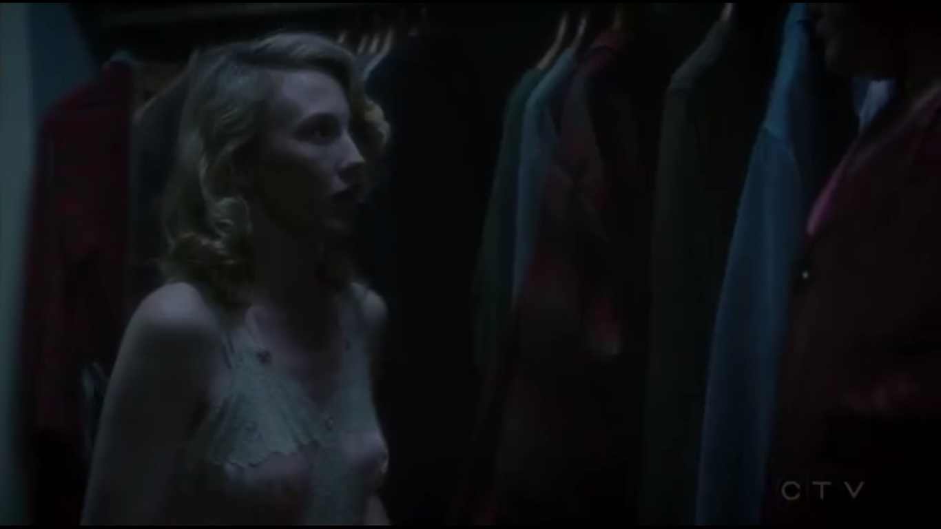 The episode begins with Jason waking Peggy up in the middle of the night- prompting her to grab her gun in the process- to show her something in the lab. It turns out that the tissue sample from Jane Scott’s autopsy is drawn to Jason whenever he reaches his hand out to it. The Matter manages to slip through and enter Jason, which blackens the whites of his eyes and, for a moment, turns him corporeal. He tells Peggy that he knows where Jane Scott’s body is.