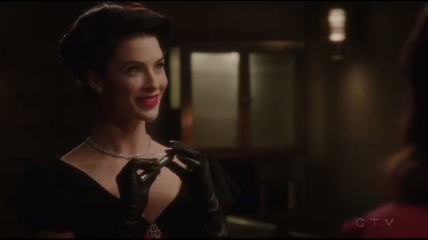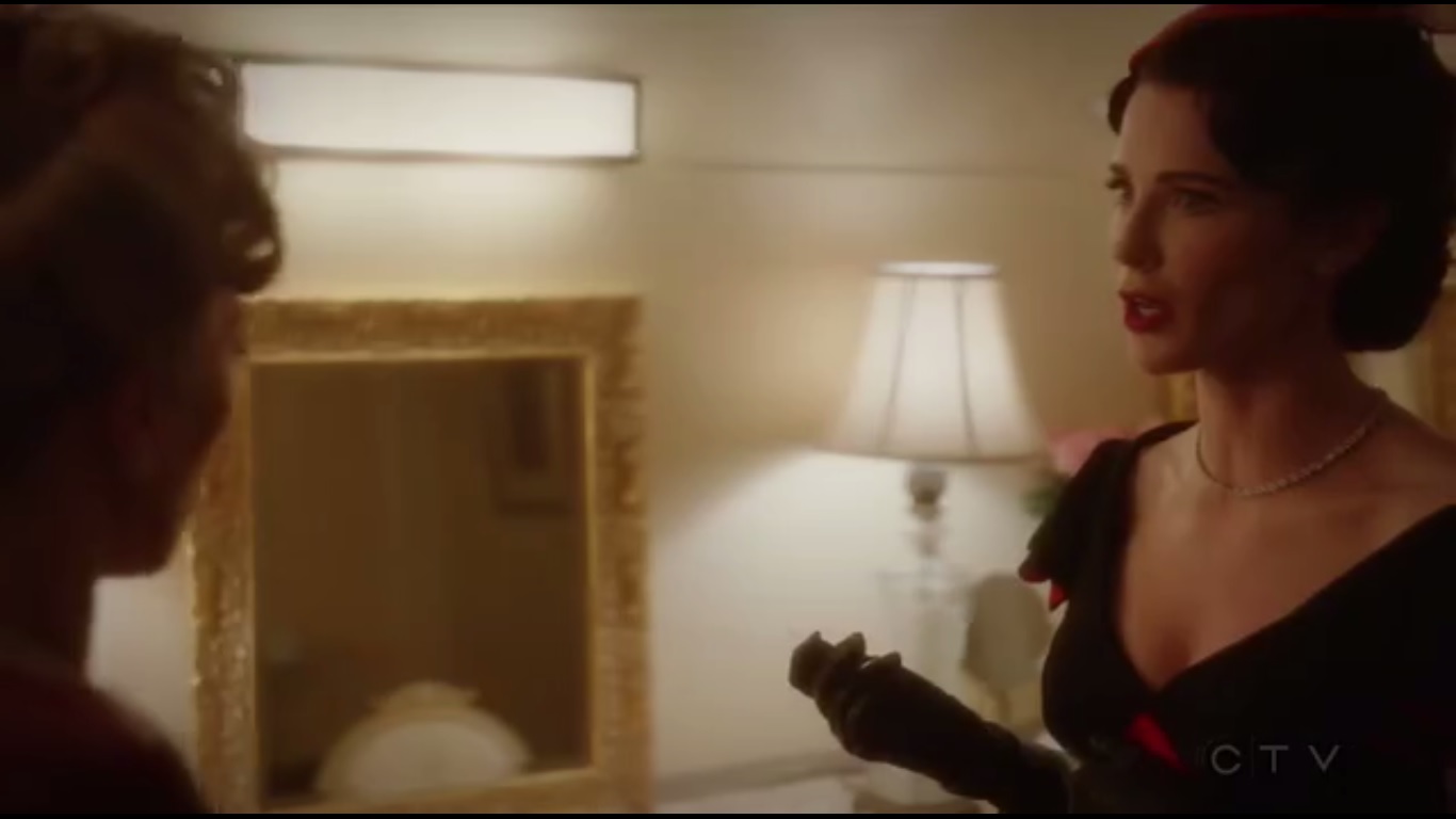 Peggy fills Dottie about her target- Whitney Frost. Dottie is unfamiliar. She’s more interested in Jason Wilkes, but Dottie is to receive a blood sample from Whitney and not make physical contact with her. Jason explains how to use the device to draw blood from Whitney. To finish the set, Peggy also gives Dottie a bow. Whitney asks Jason to explain how the device works, but she’s surprised when he walks right through her hand.