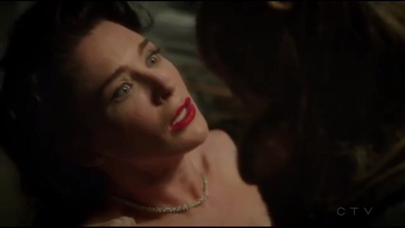 Downstairs, Whitney and Dottie chat about what makes them similar. Dottie thinks that they’re in the same boat, but Whitney says that they’re not even in the same ocean. And the ocean is a big place. Whitney says that she disabled the tracking device when she arrived, so she shouldn’t expect Peggy Carter to rescue her. She grabs Dottie’s throat as we cut to commercial, so I’m guessing that Dottie isn’t dead. Or there’d be no need to cut to black.