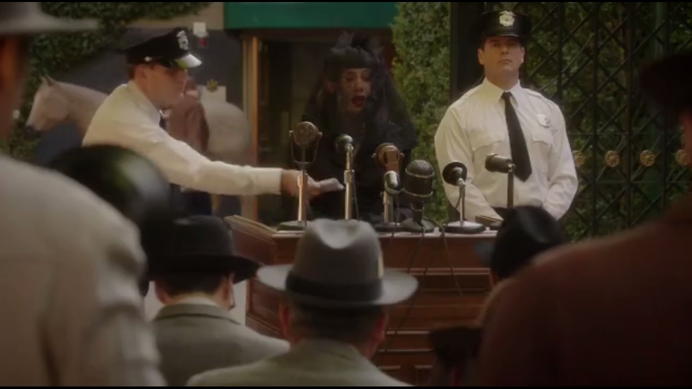 The episode begins at a studio lot as Whitney Frost addresses the press and thanks the studio for supporting her in this terrible time. Apparently, Calvin Chadwick and several of his colleagues perished at sea last night when their boat sank off of Catalina Island. There is one thing that Whitney knows: she will come through this stronger than ever. Sousa and Peggy, standing nearby, figure that Whitney must have killed them.