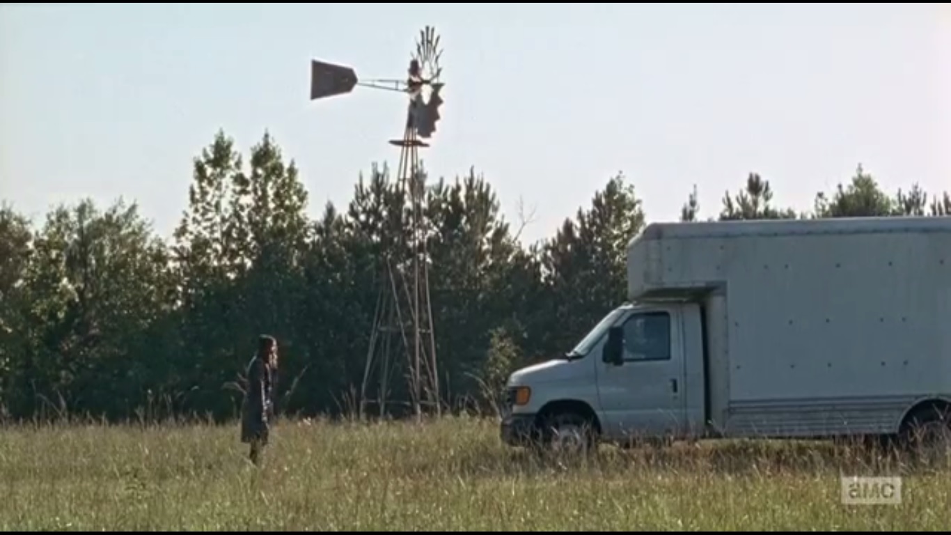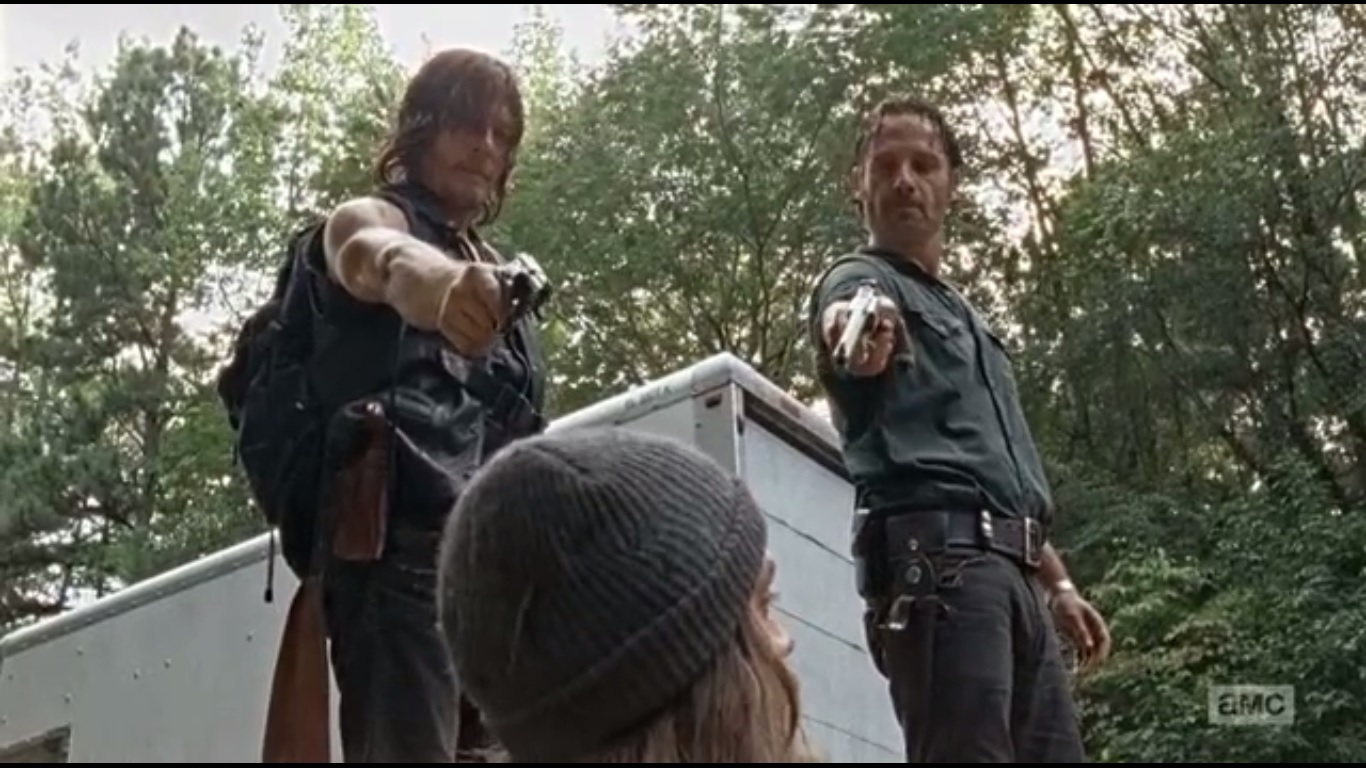 The two give chase, with Daryl hopping out of the truck to chase him on foot. Rick is soon forced to leave the van and takes care of a few walkers. Jesus attempts to swipe the van again, and even saves Daryl’s life when he kills a walker creeping up behind Daryl. Noble, but he did it with Daryl’s gun, so Daryl punches him for that.