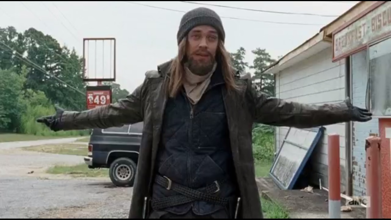 The man explains that he was running from 10 or so roamers half a mile back. He then asks Daryl and Rick the two if they have a camp, which they deny. Okay. The man introduces himself as Paul Rovia, played by Tom Payne, but his friends call him Jesus. He advises them to be ready for the new world.