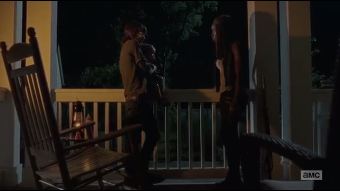 I think back to when Rick, Carl, and Michonne were on the road to Terminus. Michonne formed a close bond with Carl that’s built over time as she talked about her past before the outbreak. She’s already been his surrogate mother for some time and showed great concern for him after his injury during “All Out War.”