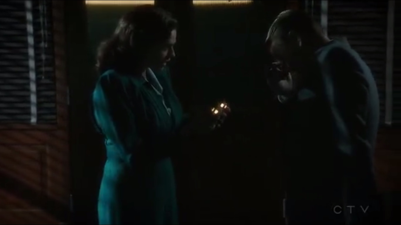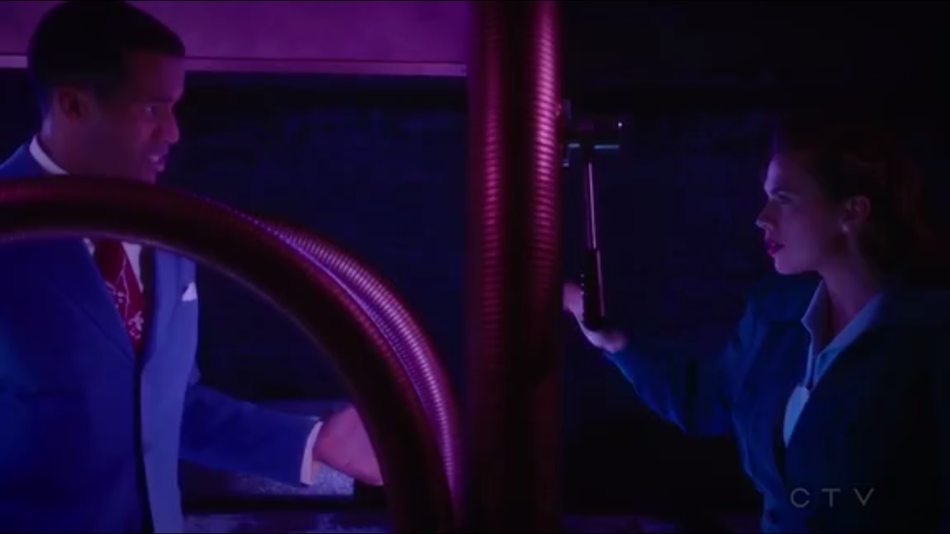Samberly and the agents unveil the gamma cannon, which Samberly isn’t too sure about whether it could close the rift. It’s not unreasonable. He is being asked to determine the usefulness of a device he’s never used. Jarvis, meanwhile, is more concerned with Whitney Frost. As the cannon has only has enough for one batter charge, Jarvis speeds off and Peggy goes after him. When Samberly asks what he should do, Sousa and Thompson order Samberly to do what Peggy says. Good words.