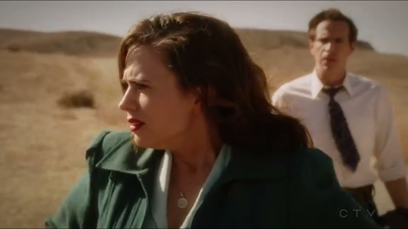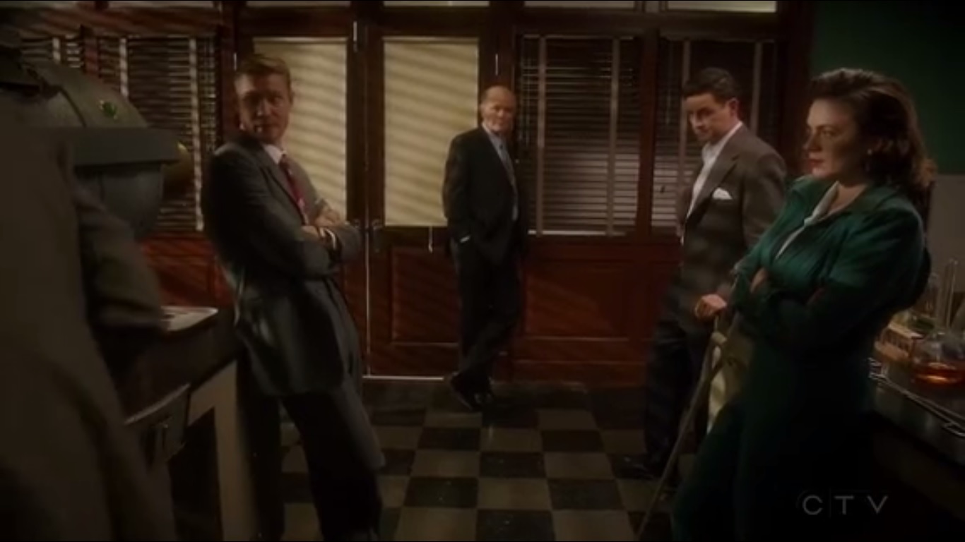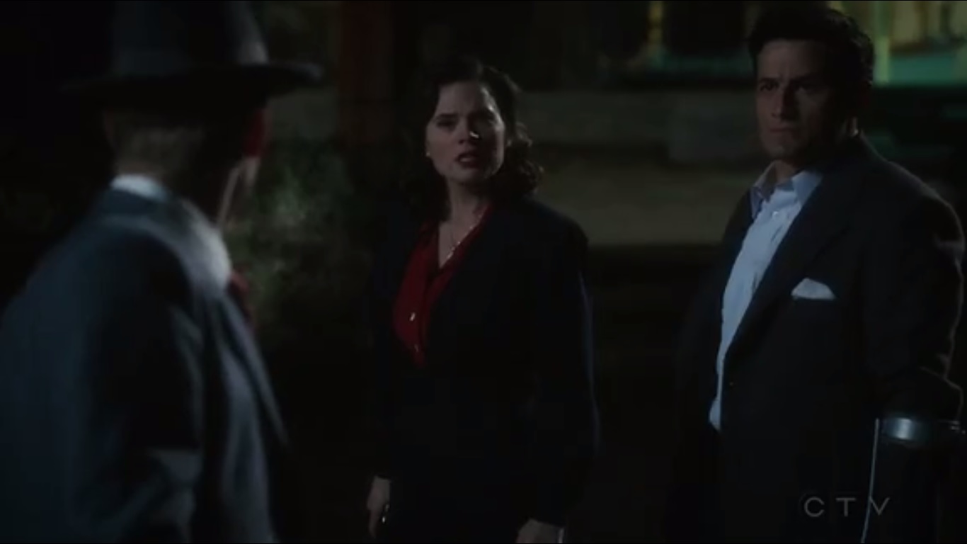 So let’s start with that opening dream sequence. It was a fun departure from the more serious moments of Agent Carter, but at the end of the day, didn’t add much, if anything, to the story, other than reinforcing that Peggy has to make a big decision. Which we’ve already known. If I sound like a sourpuss, then so be it, but I just wish the sequence lasted long enough to actually be of value instead of filling time. But I now have a strong desire to see Hayley Atwell in black and white films.