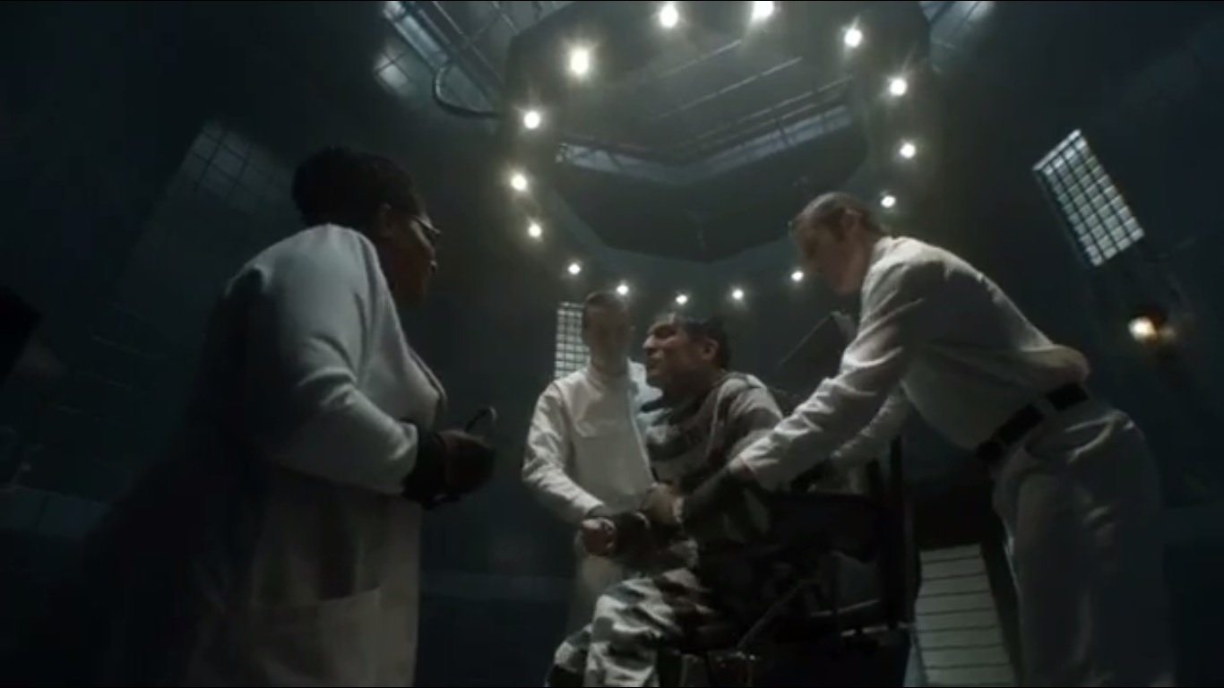 Penguin, meanwhile, is chained in a very special chair. He wants to speak with Professor Strange, but Peabody will deal with him instead, as Penguin is the face of the rehabilitation program. How great would it be to cure someone like Oswald Cobblepot? But Oswald refuses to take part, even though he’s in no position to argue. The procedure begins.