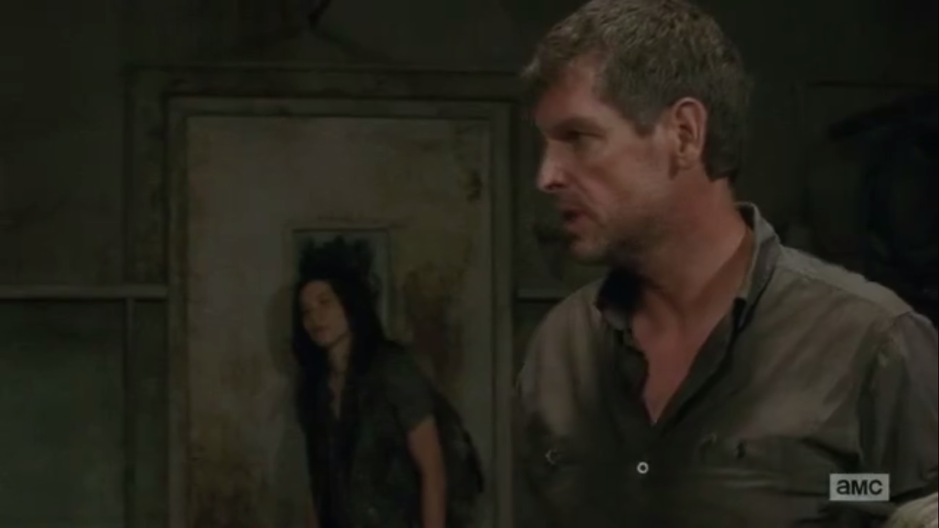 As Paula leaves, Carol warns Molly to not smoke because of the baby. She responds that Carol has more problems on her hands than a little secondhand smoke. However, another of the Saviors tells her to put out her cigarette. Carol continues, saying that the cigarettes will kill her. They already are, so really, the two of them are already in the same boat. I see no boat.