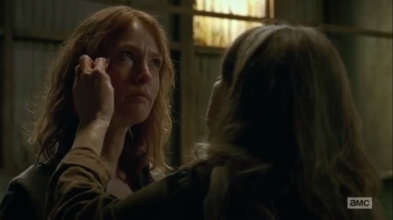 Molly patches up Paula, while Carol thanks them for helping her and Maggie. Paula doesn’t give a shit about Carol’s past, though. She figures that Carol is pathetic and doesn’t care if Carol thinks the same of her. At least they’re on the same page in that regard. Paula asks whether Carol really believes in God, but faith got Carol through her daughter’s death. Well, maybe Carol will see her again, soon.