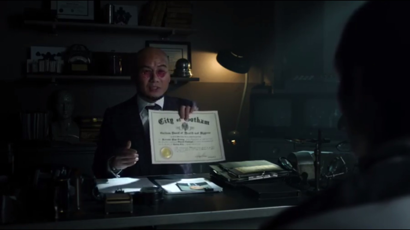 Strange then gives Oswald a certificate declaring him sane after passing his tests. He’s even saner than Miss Peabody, which means that he’s a free man and no longer has to stay in Arkham Asylum. However, Oswald believes that he’s fine where he is. He’s sane, gentle man, Strange says, and good things happen to good people. Penguin thanks Strange for being such a kind mentor and friend. Penguin heads off to gather his things.