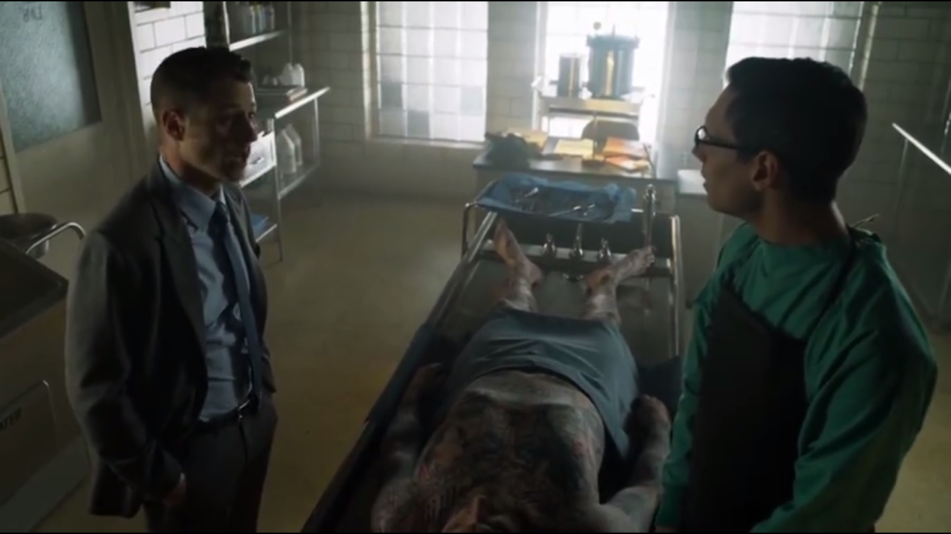 In the medical examiner’s lab at GCPD, Jim asks Nygma if he’s heard at all from Kristen. Nygma responds with a riddle: I’m strong as a rock, but a word can destroy me. The answer? Silence.
