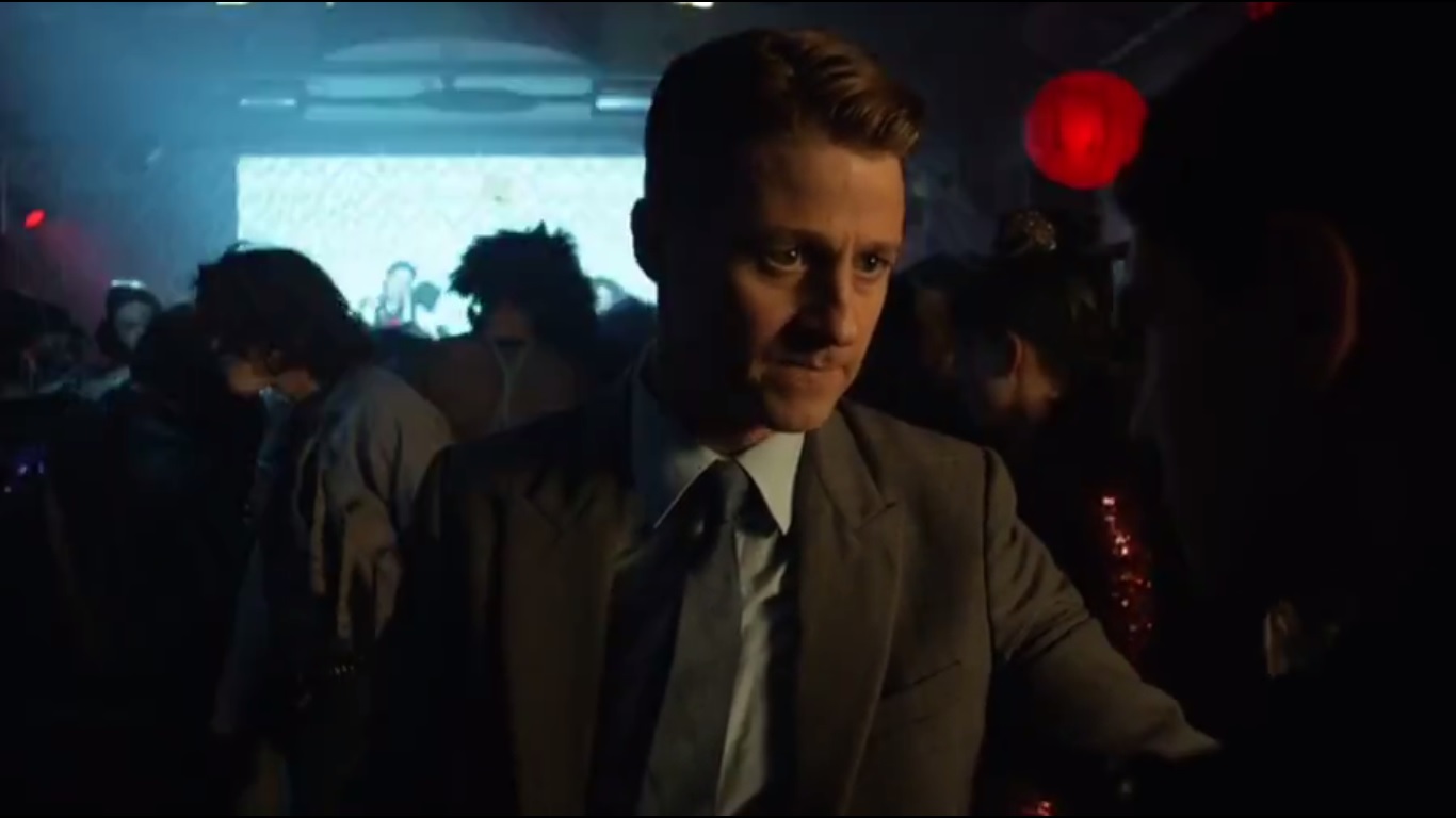 Bruce leaves just as Gordon enters, telling him what Alfred explained. Jim may not understand, and Bruce doesn’t want his help, based on past experience. And that’s when Jeri kicks into a new song, which gives Bruce just enough time to leave while Bruce flees. Where was Bullock in all of this?