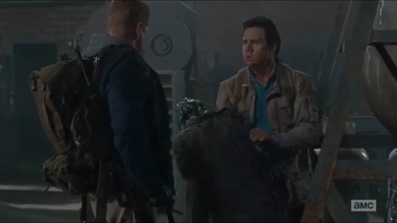 Eugene wants to inform Rick and Olivia, but before this, he runs into some trouble with a walker that’s got some melted steel encased on its head. Abraham ends up taking it out, even though Eugene claims he had full control of the situation. Abraham tells Eugene that he needs to learn fast if he’s serious about surviving in this world.