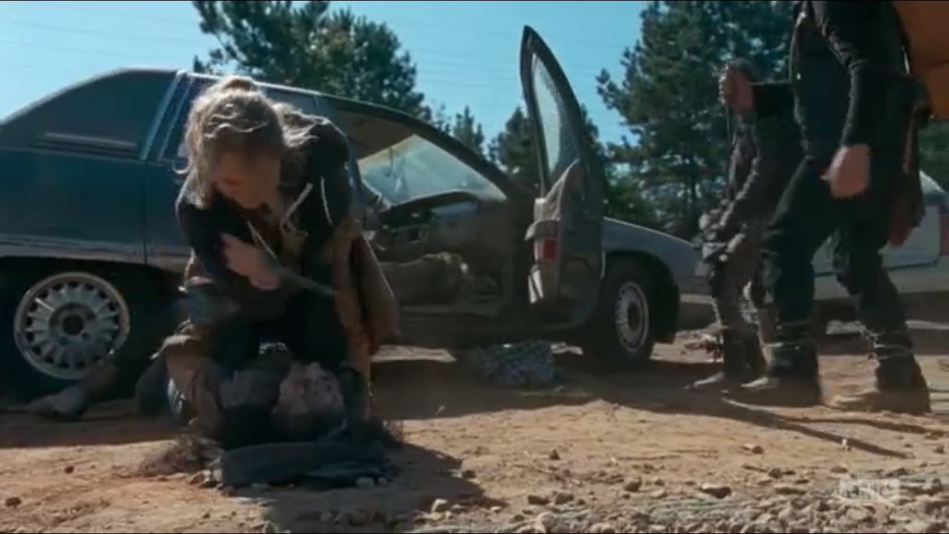 Denise may know how to use a machete and have seen roamers up close, but she’s inexperienced. When she offers to go alone, Daryl and Rosita have little option but to play babysitter. I imagine this isn’t how they envisioned spending their day.