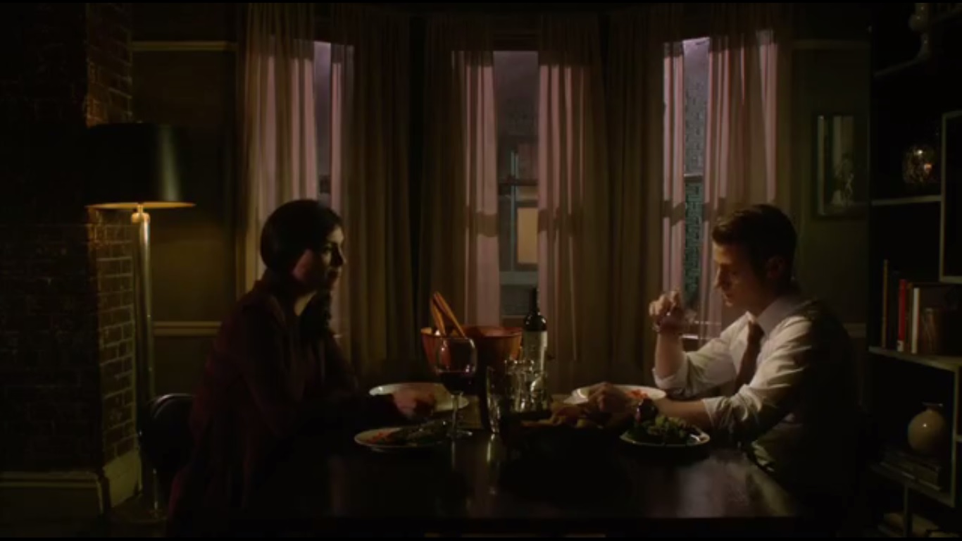 Now for a domestic scene. Jim and Leslie have a quiet dinner, with Jim receiving no word on the bomber yet. He just wants to know the man’s end game, which might be why he’s not eating. Well, no, there’s another reason. He tells Leslie about Internal Affairs reopening the investigation. Leslie is upset that Jim lied to her, but he defends himself, saying that they couldn’t have left Gotham City. He promises to find a way to fix this.