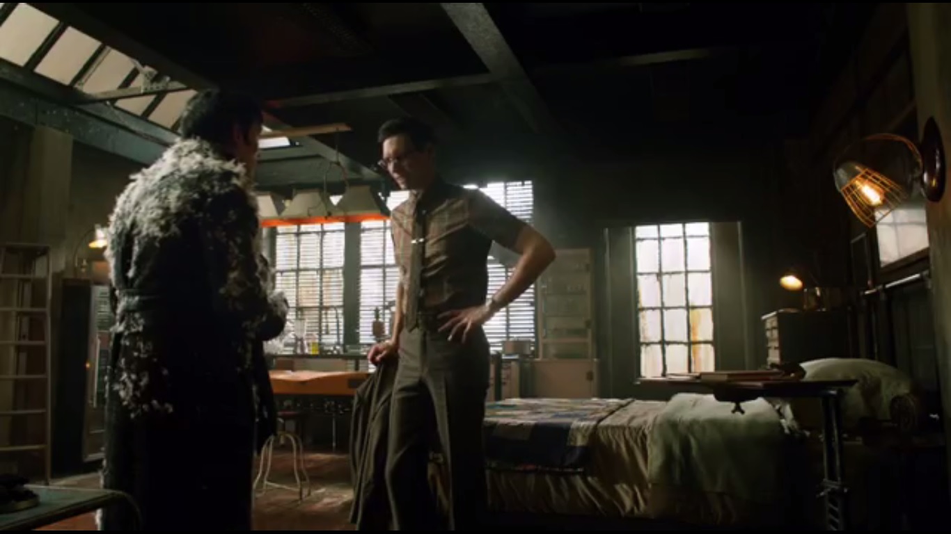 Nygma gets an unexpected visit from Penguin, who is now covered in tar and feathers. Nygma is glad to see Oswald and the two catch up, with Penguin glad that Butch and Tabitha didn’t kill him. He then tells Ed that violence and anger are not the answer. If Oswald can change, so can Ed, but Nygma shoots it down. He’s hitting his stride and is grateful for Penguin’s advice, particularly what he said about Jim Gordon.