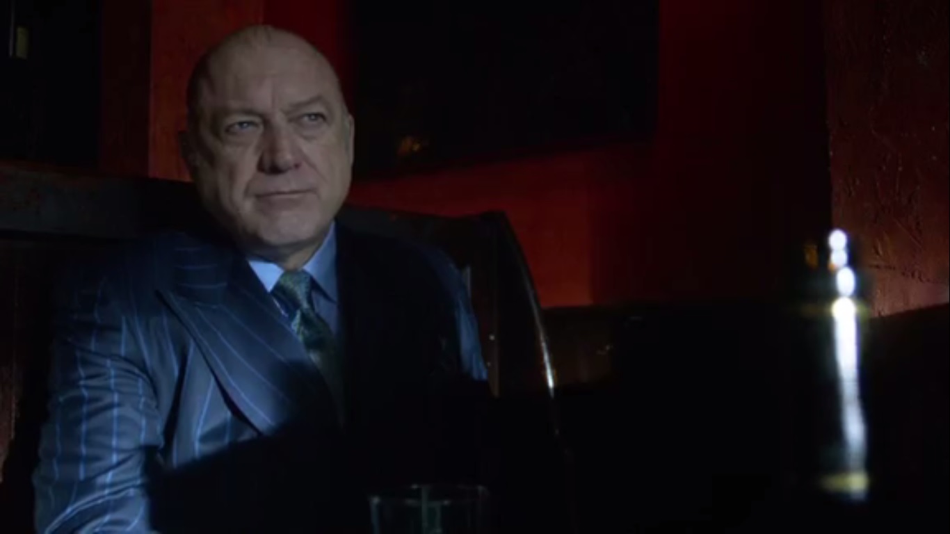 At a diner, Bullock wonders who would set up Jim and how much longer he can stay alive in Blackgate. Bullock knows that he’s making a bad choice, but he has nowhere else to turn but to Carmine Falcone, who just focuses on the fact that Bullock is wearing a hat indoors. It’s the little things.