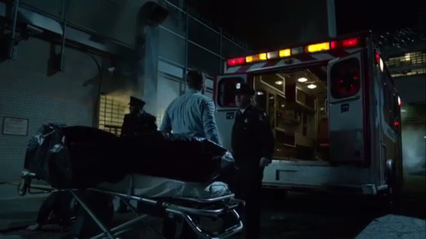 Anyway, Jim’s body is wheeled out into an ambulance. Bullock and the guard are ready to free him, but Jim wonders whether he’s supposed to stay here. Bullock reminds Jim that the person who freed him is still out there. He finally agrees to leave, but he’ll need one more favor.