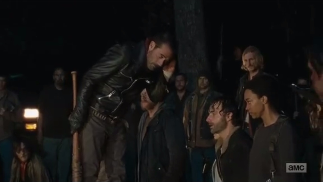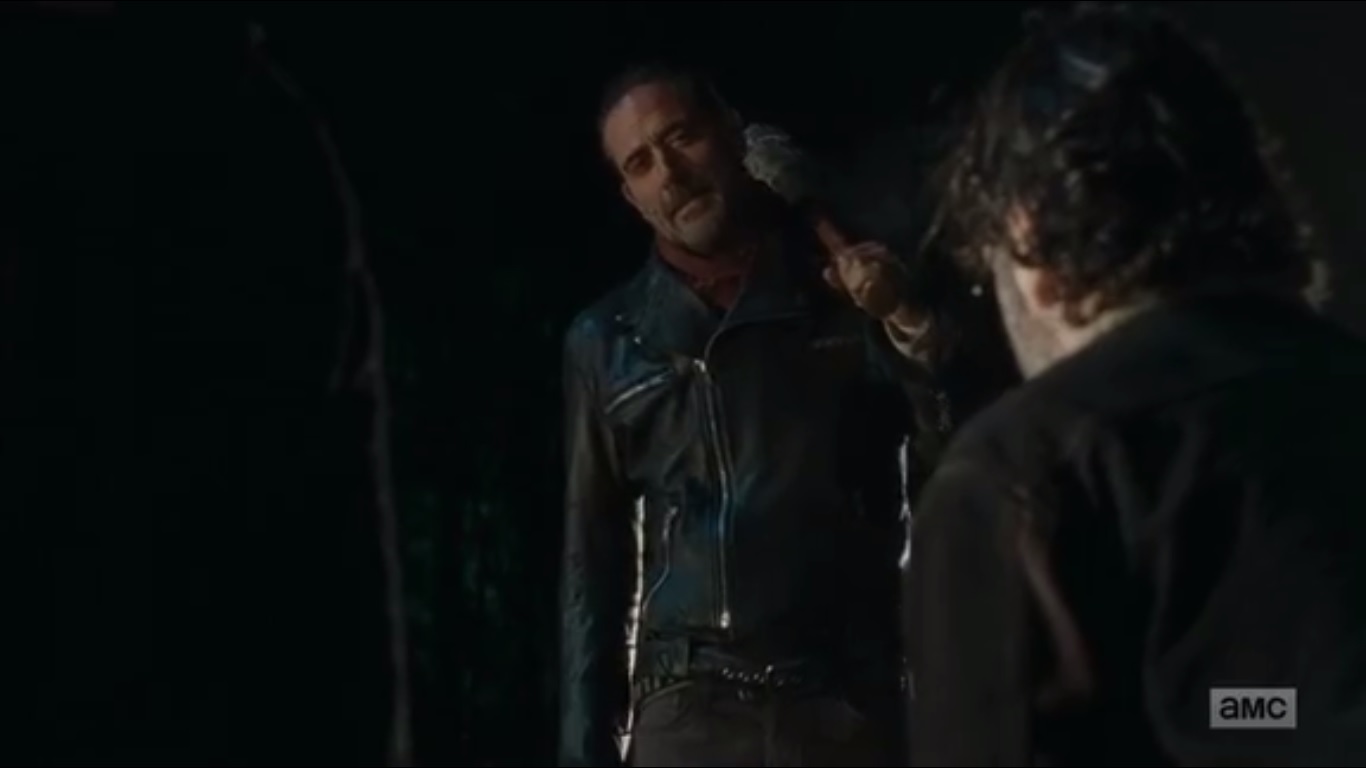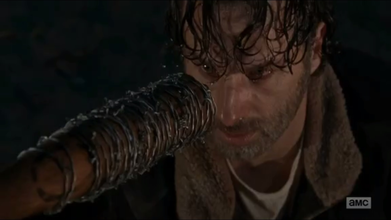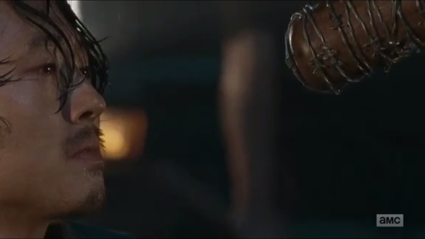 It’s taking the easy way out instead of leaving audiences as distressed as the characters would be.  Let us live out this horror with them by showing us who Negan dies.  Don’t do it from a first person perspective and try to justify this as setting up the next season.  It knocks the wind out of you and ruins an otherwise well-directed and tense final moment.