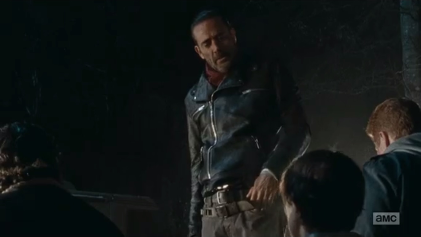 But then Negan shows up with something to…prove.  Not to fear since we don’t see the result, more on that later, but to prove that he and his Saviors will make due on their promises.  First off, credit where it’s due: Jeffrey Dean Morgan is great in his introduction as Negan.  He’s smug, carries a huge presence, and is both humorous, yet threatening at the same time.