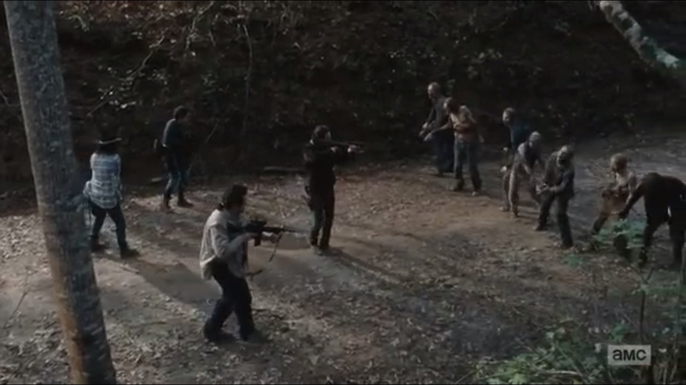 Because until the end, what we got was the RV team making detour after detour and being antagonized by the Saviors.  They were frustrated, but kept finding alternate solutions.  When they were forced to split into two groups and head on foot with Maggie still weak, the group had reached a point of desperation.  Not enough to break them because, like past situations, they were confident that nothing could stop them.