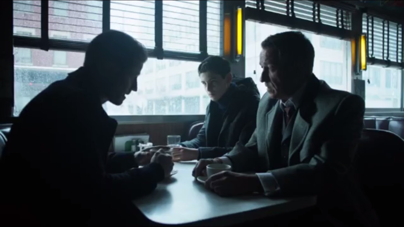 Bruce then tells Jim at a diner what he and Alfred learned. Jim mentions The Philosopher and bets this is the man behind the Wayne murders. Jim wants Lucius Fox to put together a list of names of scientists who worked for Wayne Enterprises over the past 15 years. Maybe Karen could identify them, but before that, Jim needs to break her out of Blackgate.