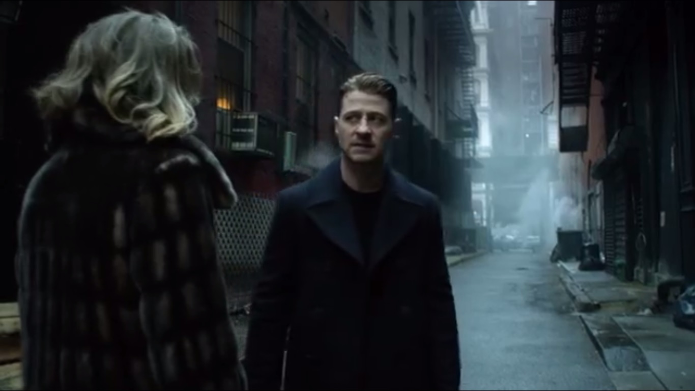 Jim and Bullock go over the Wayne murder case. Matches Malone worked with two contractors, but the only living one is The Lady, who is now in the wind after she sent assassins after Jim at Galavan’s penthouse. Someone must know where she is, but they would be professional hitmen. Bullock suggests that Jim uses GCPD’s available resources, but Jim doesn’t want to have Barnes breathing down his neck.