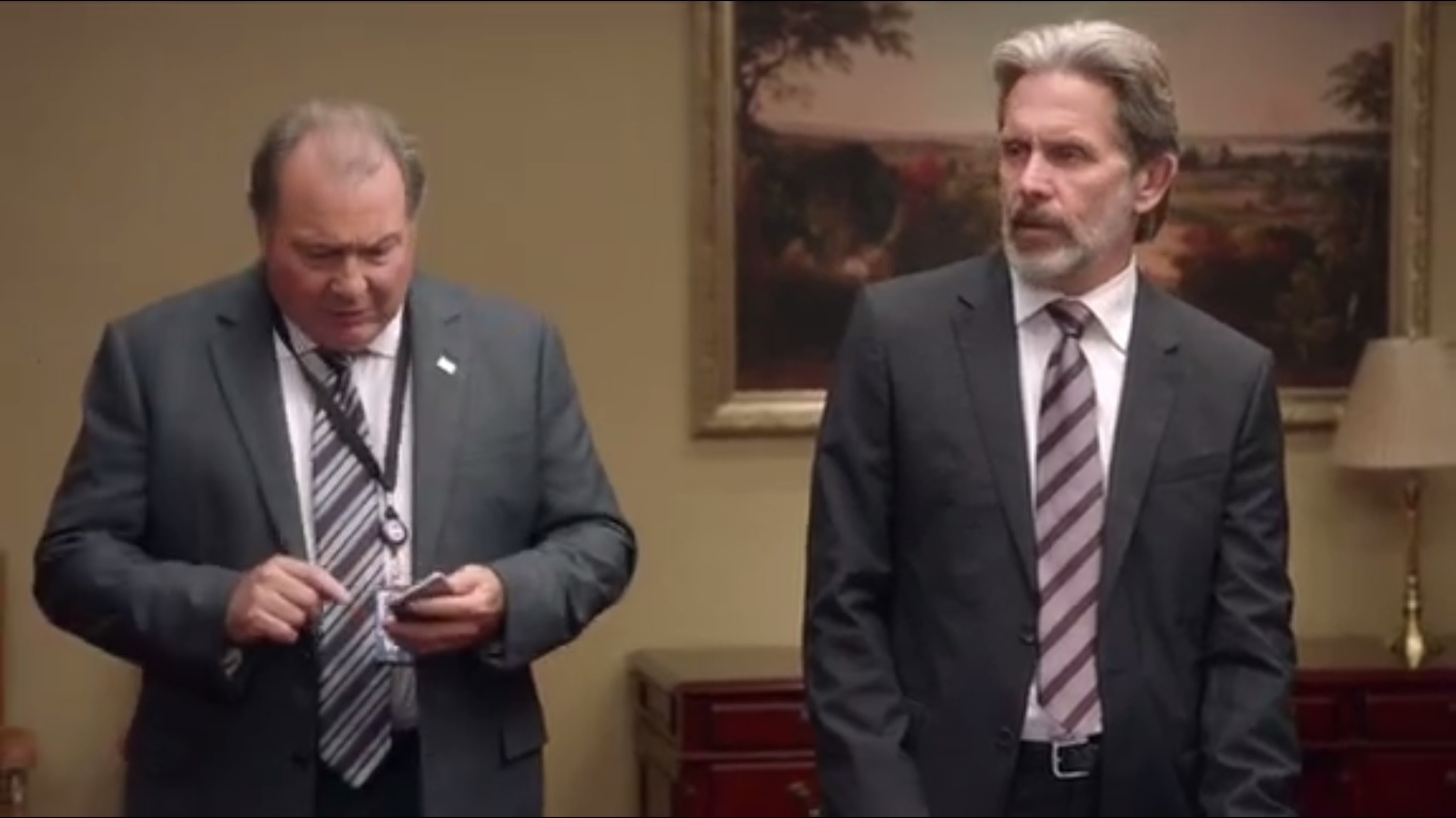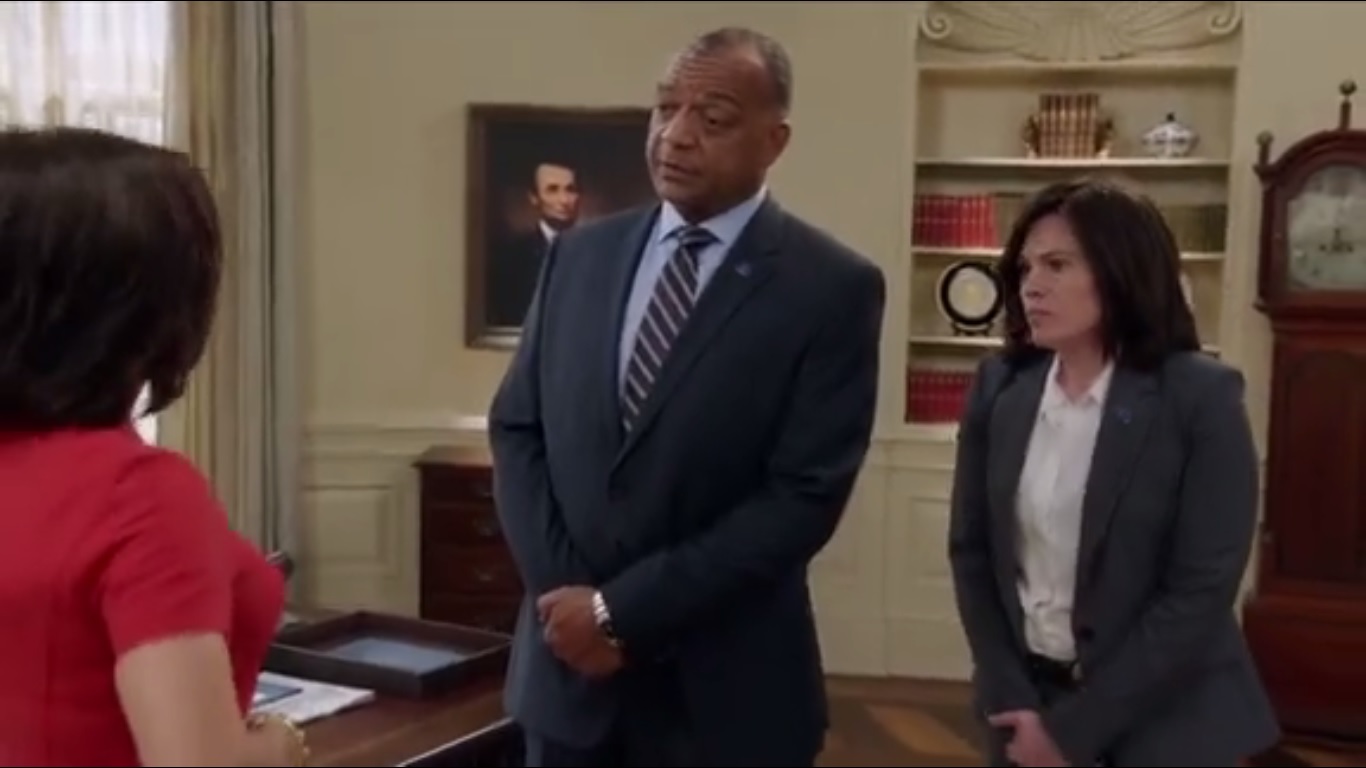 Bill Ericsson arrives out of nowhere and suggests re-purposing the election Twitter account to a POTUS account so she can speak right to the American people. Ben shuffles Bill outside of the meeting room to remind him that he’s isn’t welcome since he’s about to be indicted.