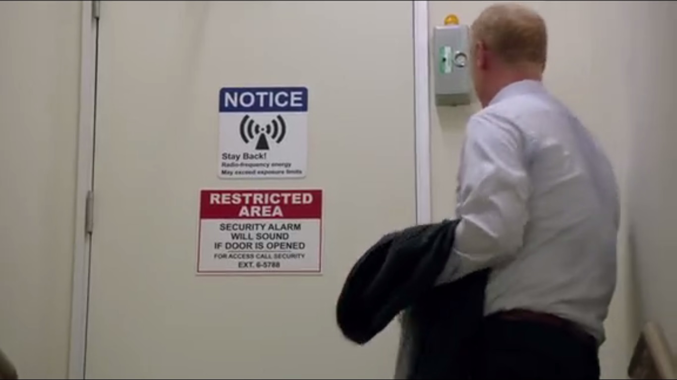 Mike gets his workout on the stairs, but because he’s bad at reading signs, he opens a nearby door that’s for restricted use.