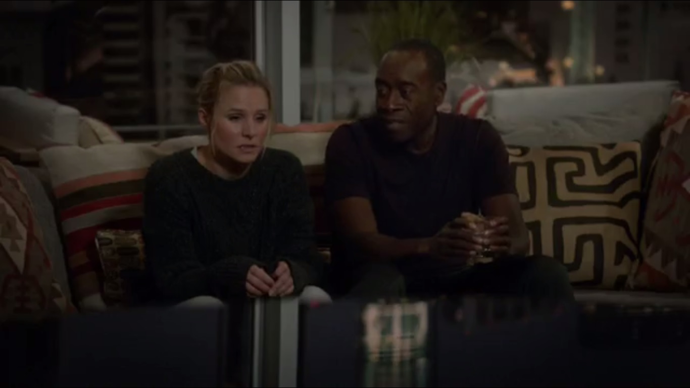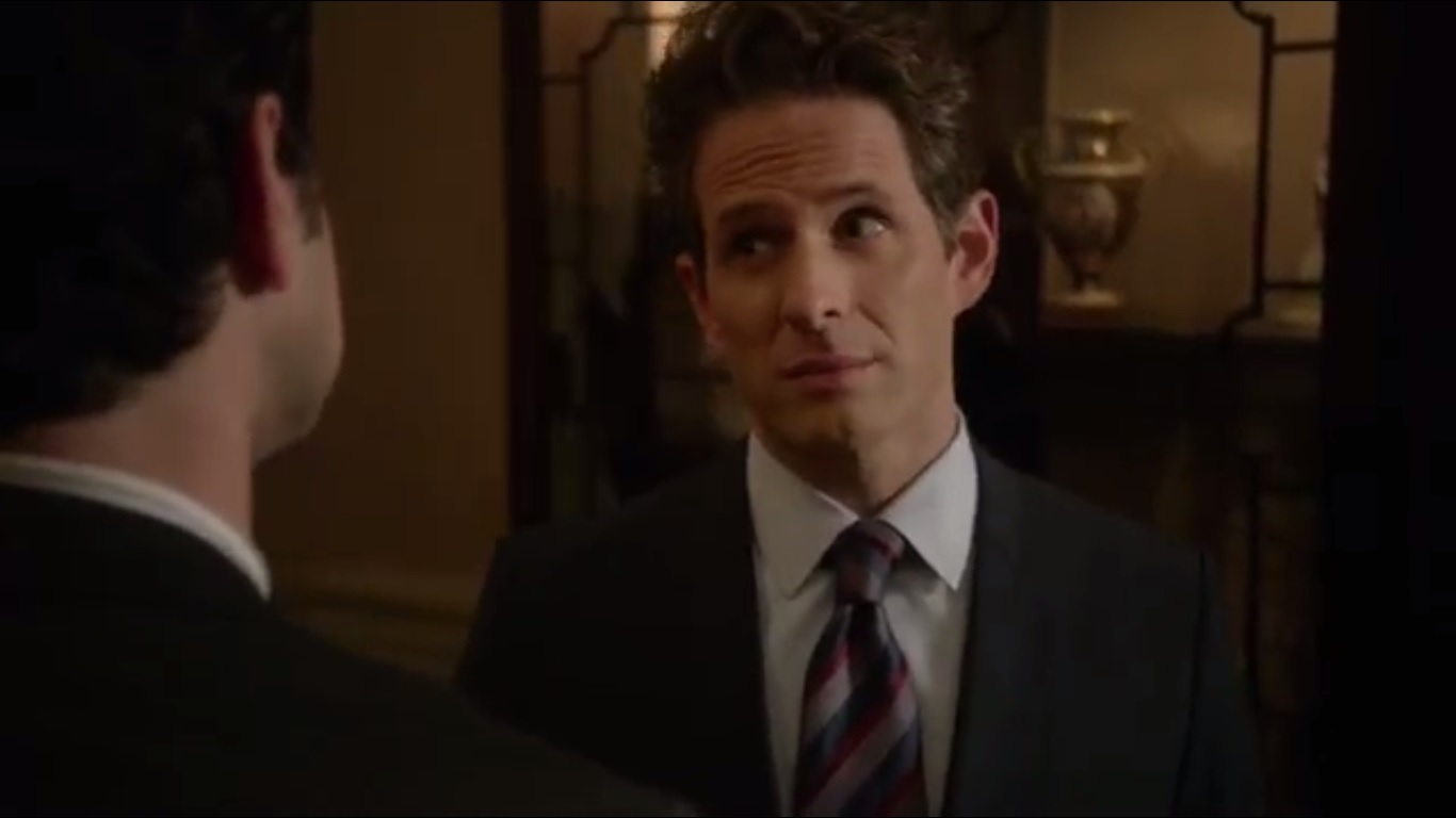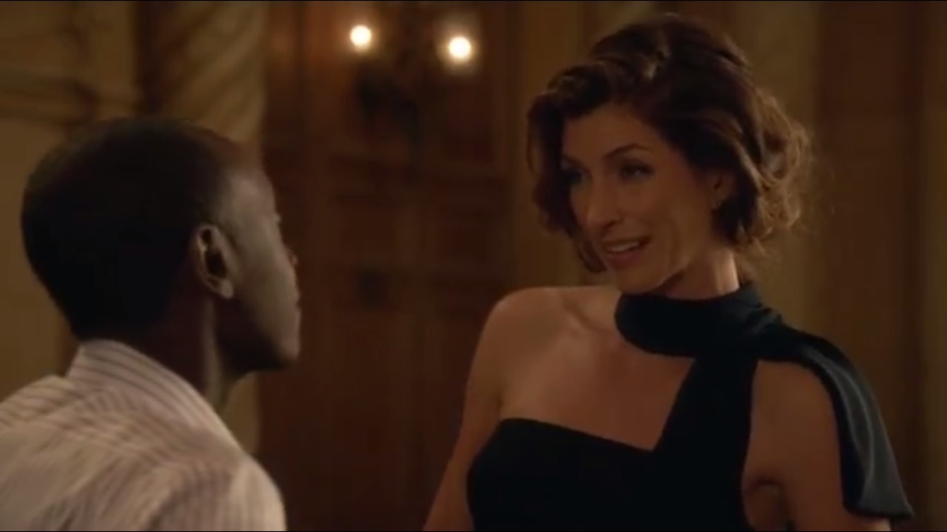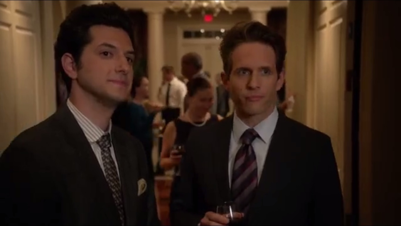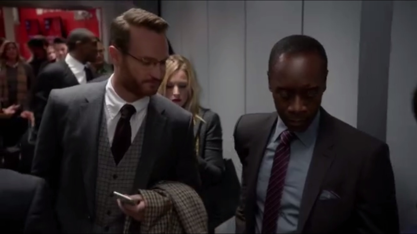 Back at the meet-and-greet, Clyde speaks with Seth Buckley, played by Glenn Howerton, about how he roughed out some numbers to find a feasible path forward on a government-private sector partnership. Cost will be controlled since most of it will be defrayed by the businesses. Seth notes Clyde’s interest in Bronwyn and figures that’s why he’s really here.