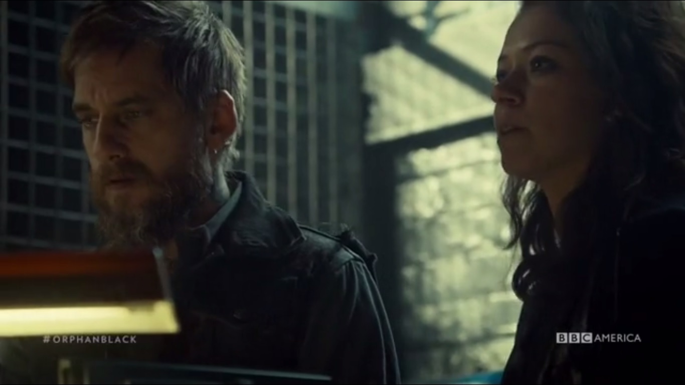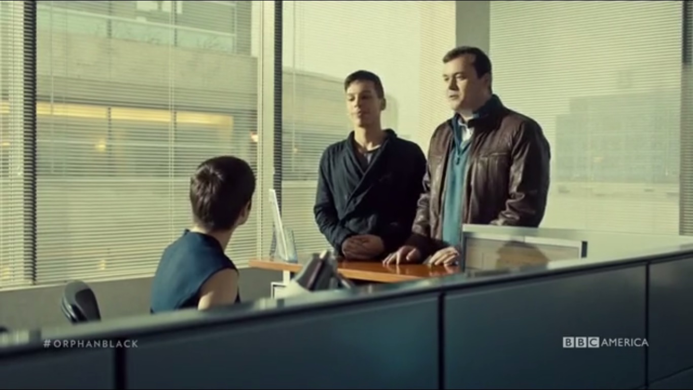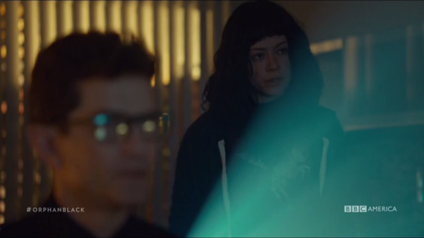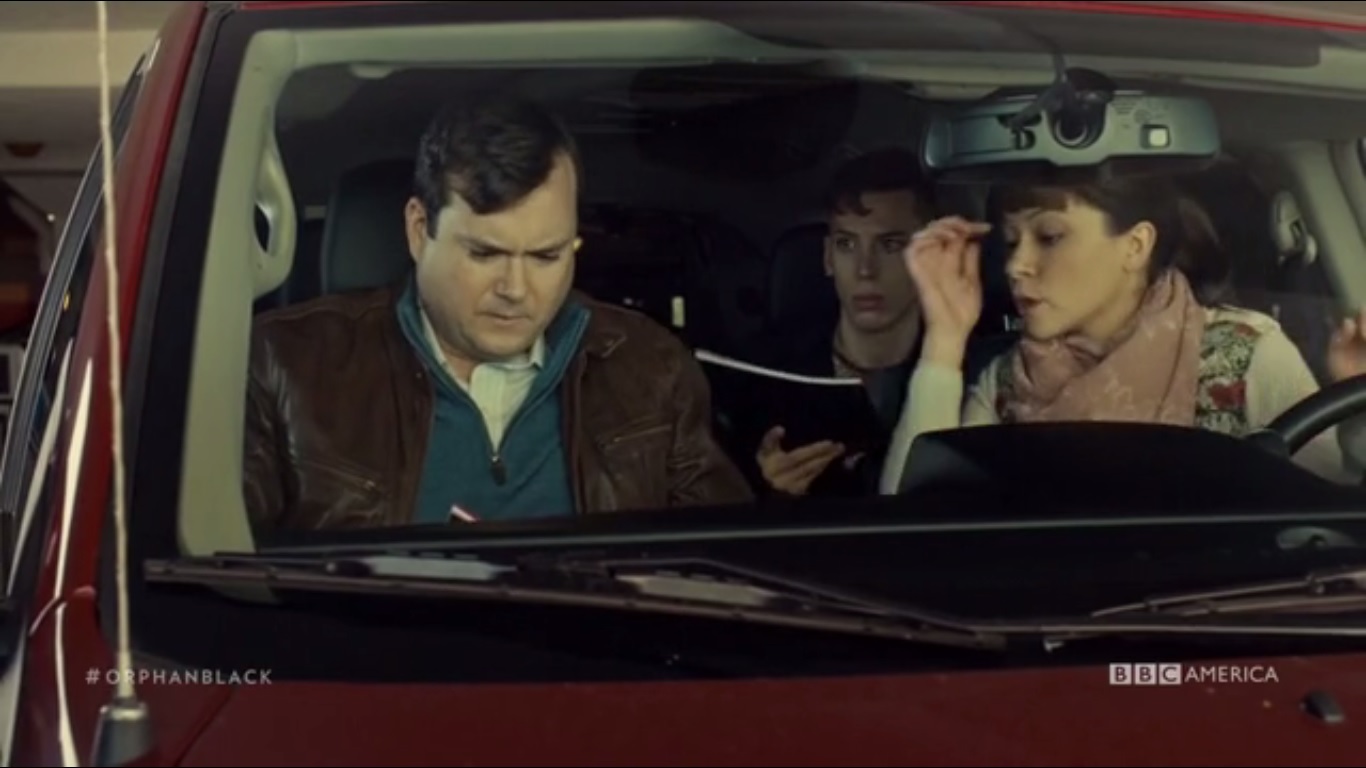 Outside the fertility clinic, Alison briefs Donnie and Felix on just about everything, as they’ll be posing as parents to see if this clinic is a Neolution front. And Since Beth has already been inside, Alison can’t go.