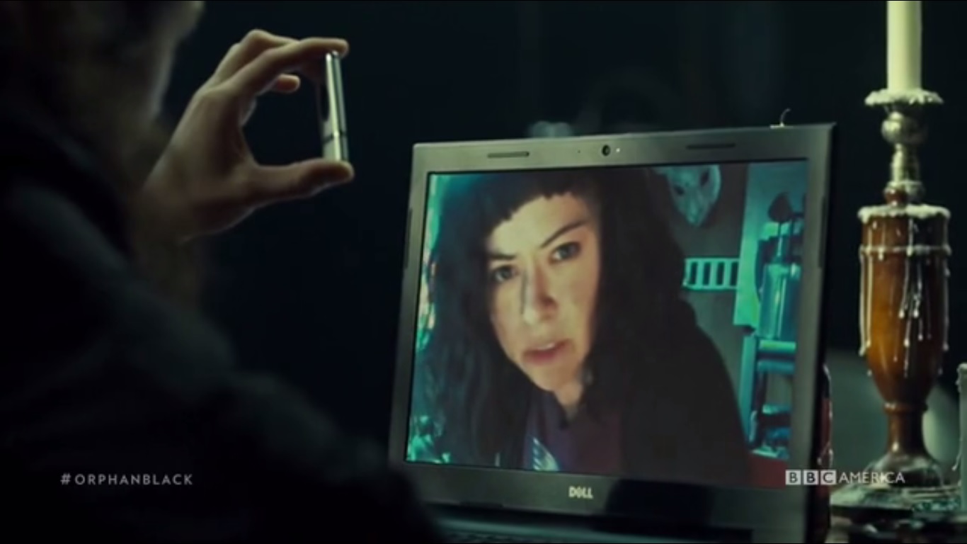 So Ferdinand heads to Beth’s flat and finds not Sarah, but a woman wearing a sheep mask while on a computer screen. M.K. tells Ferdinand that she has information about Rachel and Sarah Duncan. Once Ferdinand sits down, though, a device activates. M.K. steps out and tells him to remain seated so she can play her slide show.