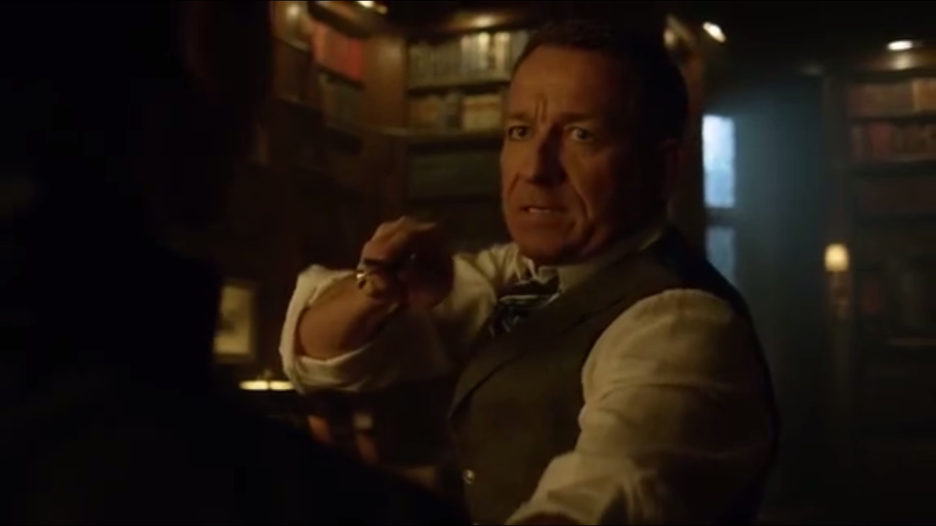 The damn rocket launcher, like Jim shooting Cale, causing him to explode, was that over the top wackiness I’ve come to expect from Gotham. Somehow, it worked and got a laugh out of me. It was a deus ex machina, as Penguin and Butch literally showed up at Wayne Manor out of nowhere- how’d they even know Galavan would be there at that time?- to save Jim, Bruce, and Alfred.