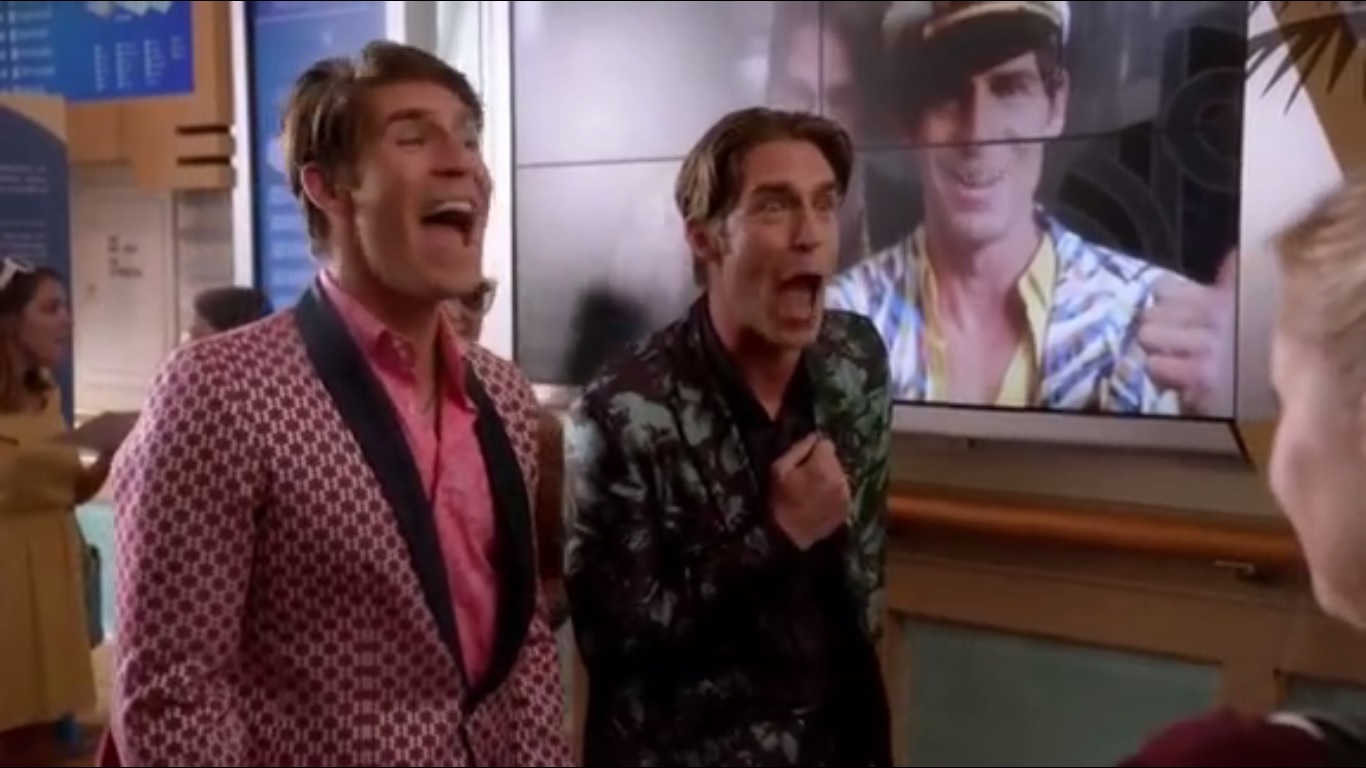That evening, at another party, Clyde has soot on himself. Doug thinks that Clyde might not have fucked the captain. Clyde just fucks with Doug. Across the floor, the pod spots the twins coming to an arrangement. They share their idea with the pod: instead of them putting up the money for a ship, Palace Cruises gives them one to run.