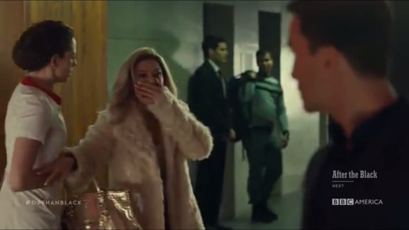 Before Krystal can leave, she’s accosted by the employee sent by Evie and is escorted out. Cosima, meanwhile, slips into scrubs and passes a woman in painful labor. Susan, watching via surveillance camera, confirms that Krystal is a special subject who has some suspicions, but is harmless otherwise.