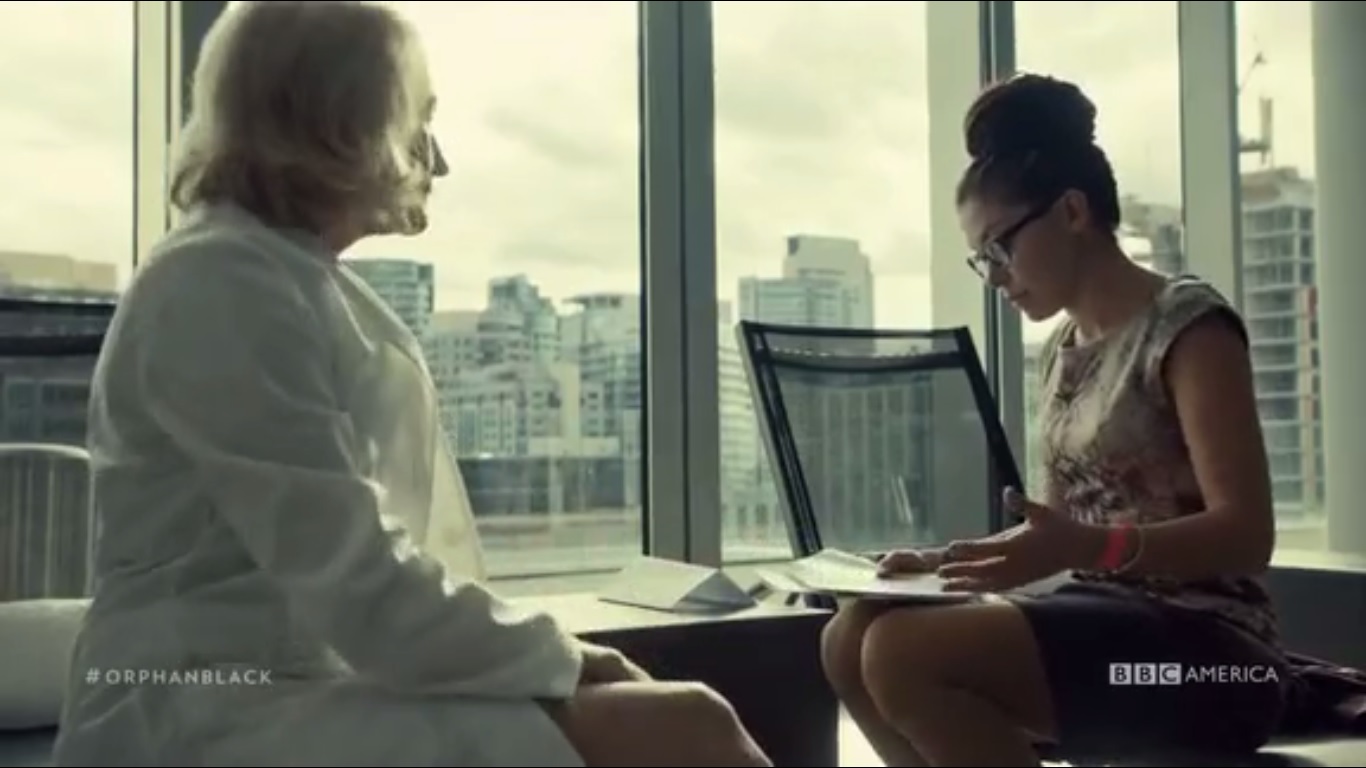 Evie and Susan talk with Cosima, who is livid that humans are being experimented on as they are- it’s trial and error without consent. She’s horrified by the baby she saw. Evie leaves so Susan can speak privately with Cosima: she apologizes for what’s happening.