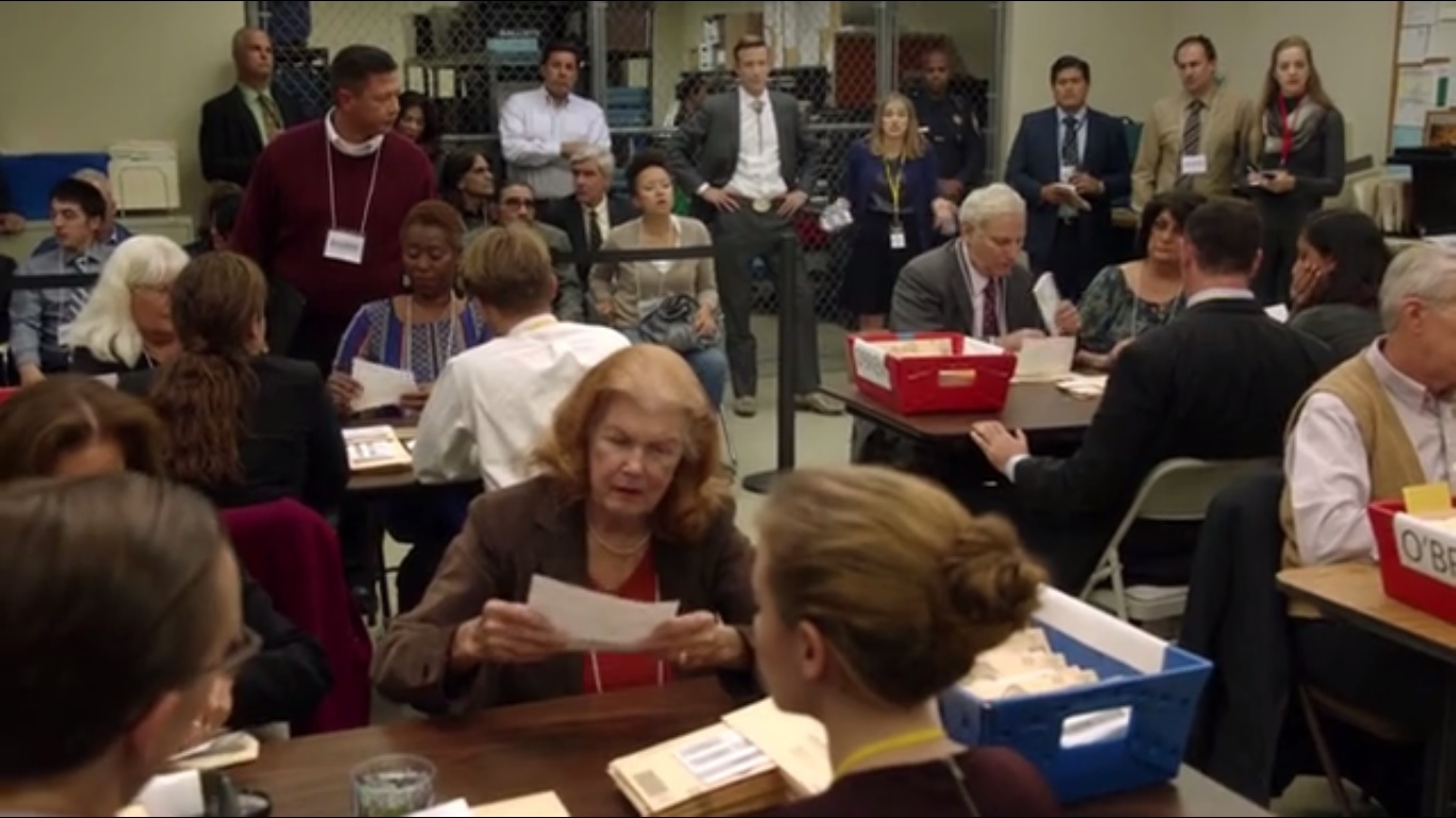 Back at the Nevada Election Board, the recount continues. Amy talks with an observer, but she goes off the cuff about Eleanor Roosevelt eating pussy. Is it true, though?