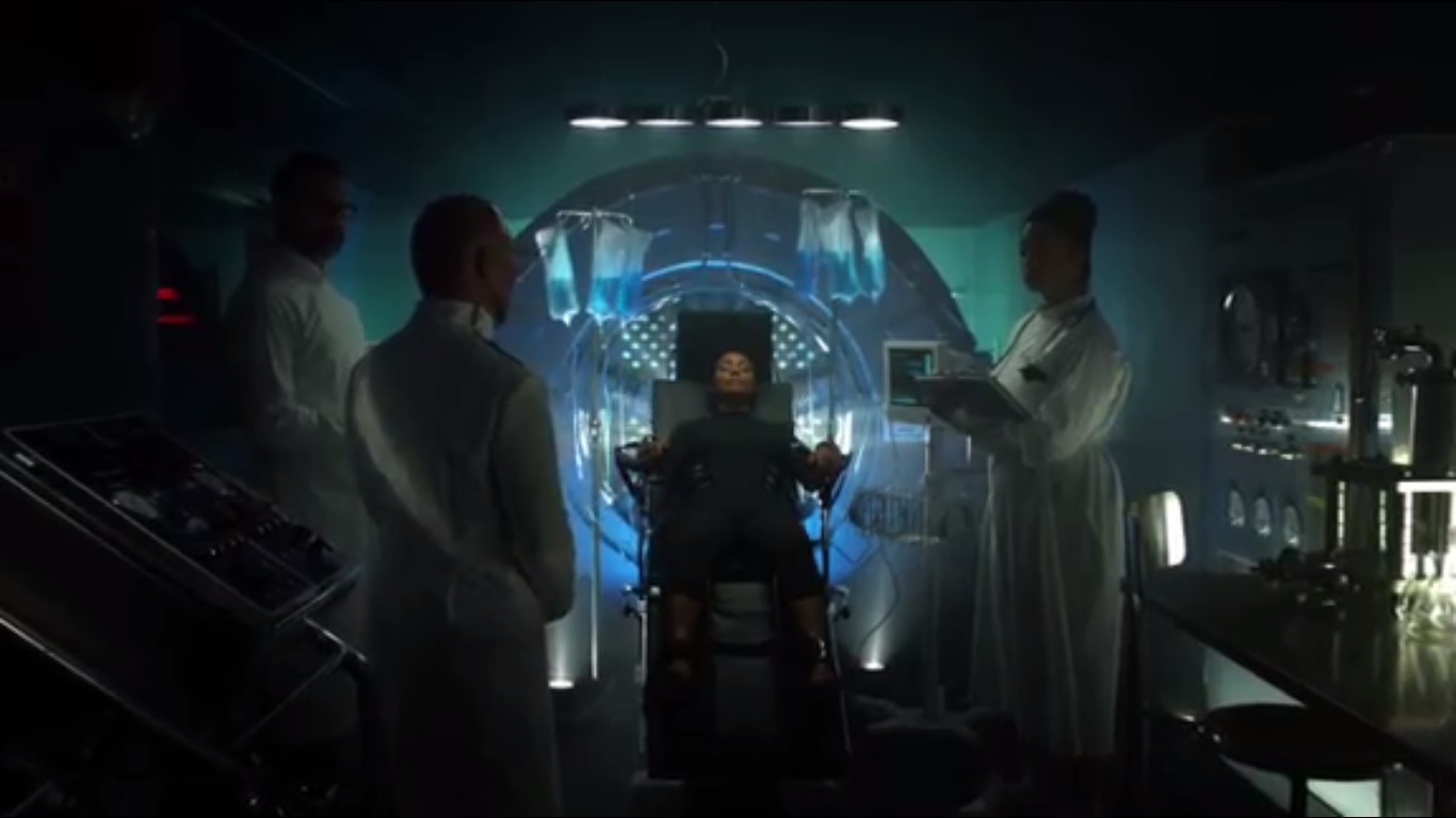 Jim, meanwhile, is brought before Strange. Even if others are coming to rescue Jim, Strange has a solution to the problem. Guards place a device over Jim’s head and pour a liquid into the top.