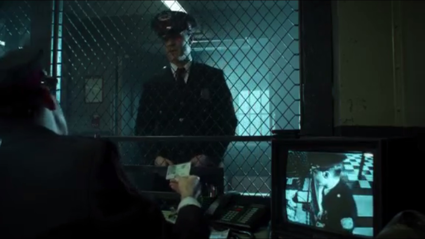 Jim slips in with a uniform and an expired key card that clearly shows his face. Elsewhere, Peabody shows Lucius around Arkham, but he’s too busy searching for anything strange on his reader.