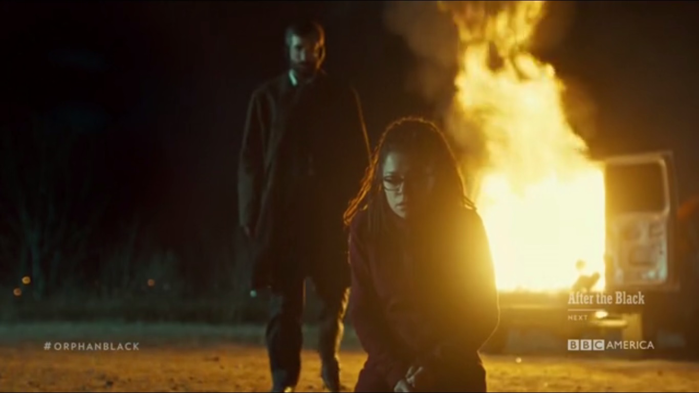 As Cosima turns around, Duko finishes off Kendall with a single bullet and torches the van. Evie tells Cosima that Delphine was shot dead. She leaves a phone and gives Cosima some instructions: tell Susan that the original is dead and tell Sarah that this is over. Otherwise, Beth died for nothing.