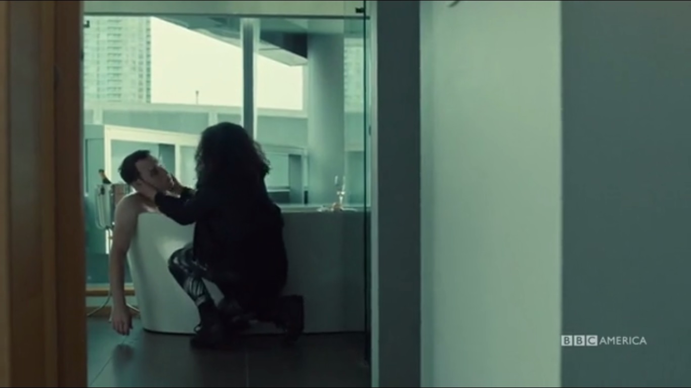 In no time at all, they arrive at a hotel room and find Ira glitching and overdosing in the tub.