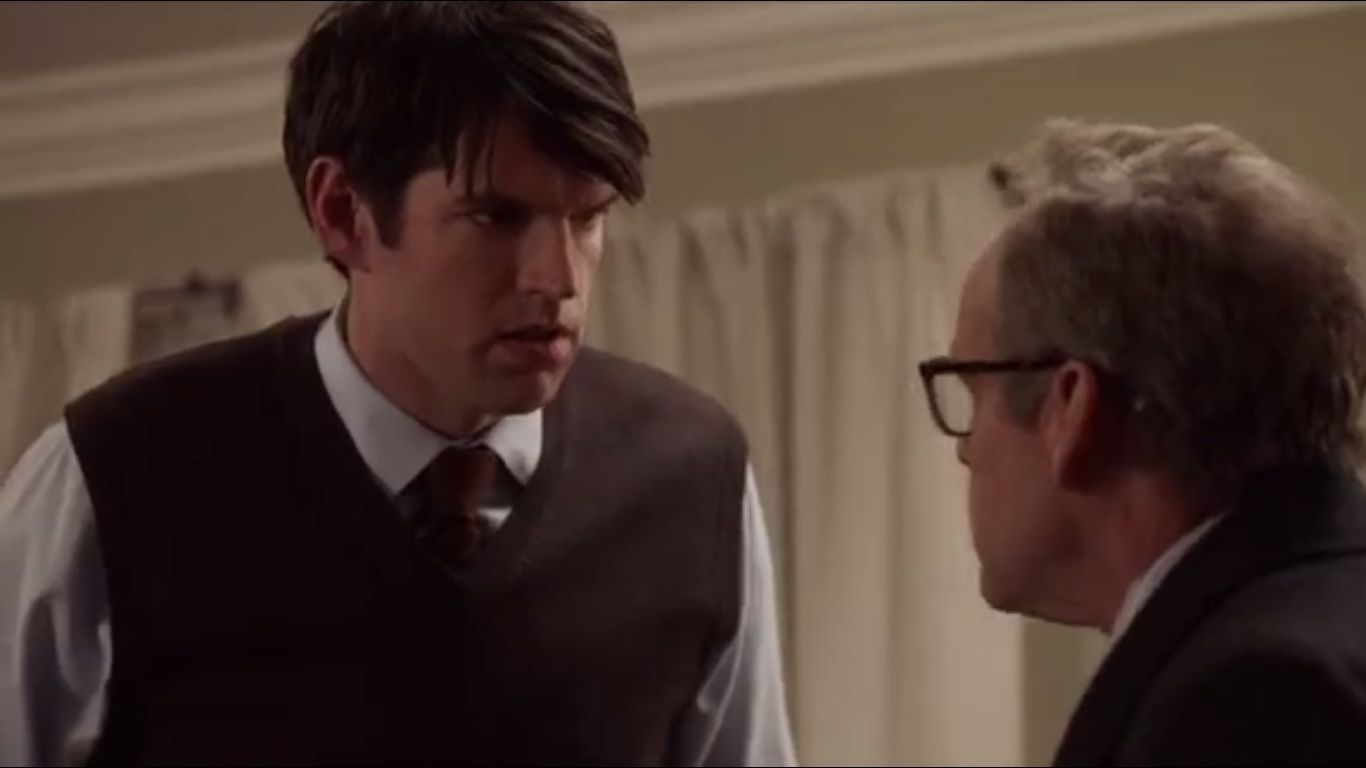 We then cut to Dan and Amy watching Tom James on ABC. Amy’s father, played by Jim O’Heir from Parks and Recreation, tells Dan to leave. After all, he has had sex with both Amy and Sophie.