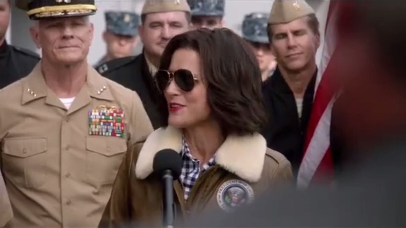 As Mike once again fields questions on the salmonella crisis, Selina, now wearing sunglasses, meets with sailors and marines on the South China sea. Also, Marjorie still isn’t one for conversations. There’s a text from Ben- folks are liking the trip. But then, as Selina serves food, she and Gary are horrified to learn that Jonah is running for Congress.