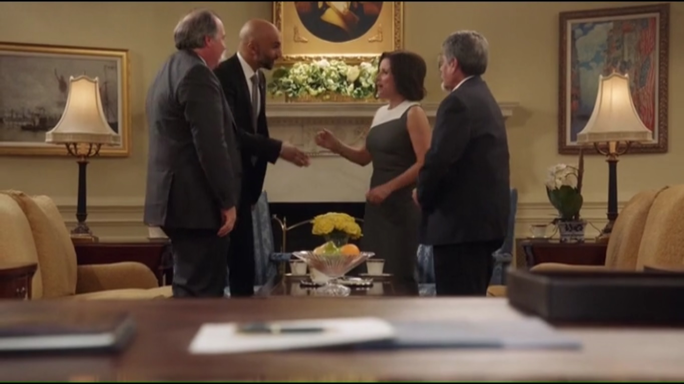 Ambassador Al Jaffar tells Selina that the Chinese are now nervous about the Tibet arrangement since Selina isn’t in power anymore. She counters that she’s not out of power yet. Plus, it’s unannounced as of now, but she’ll be continuing on as Tom James’ Vice President.