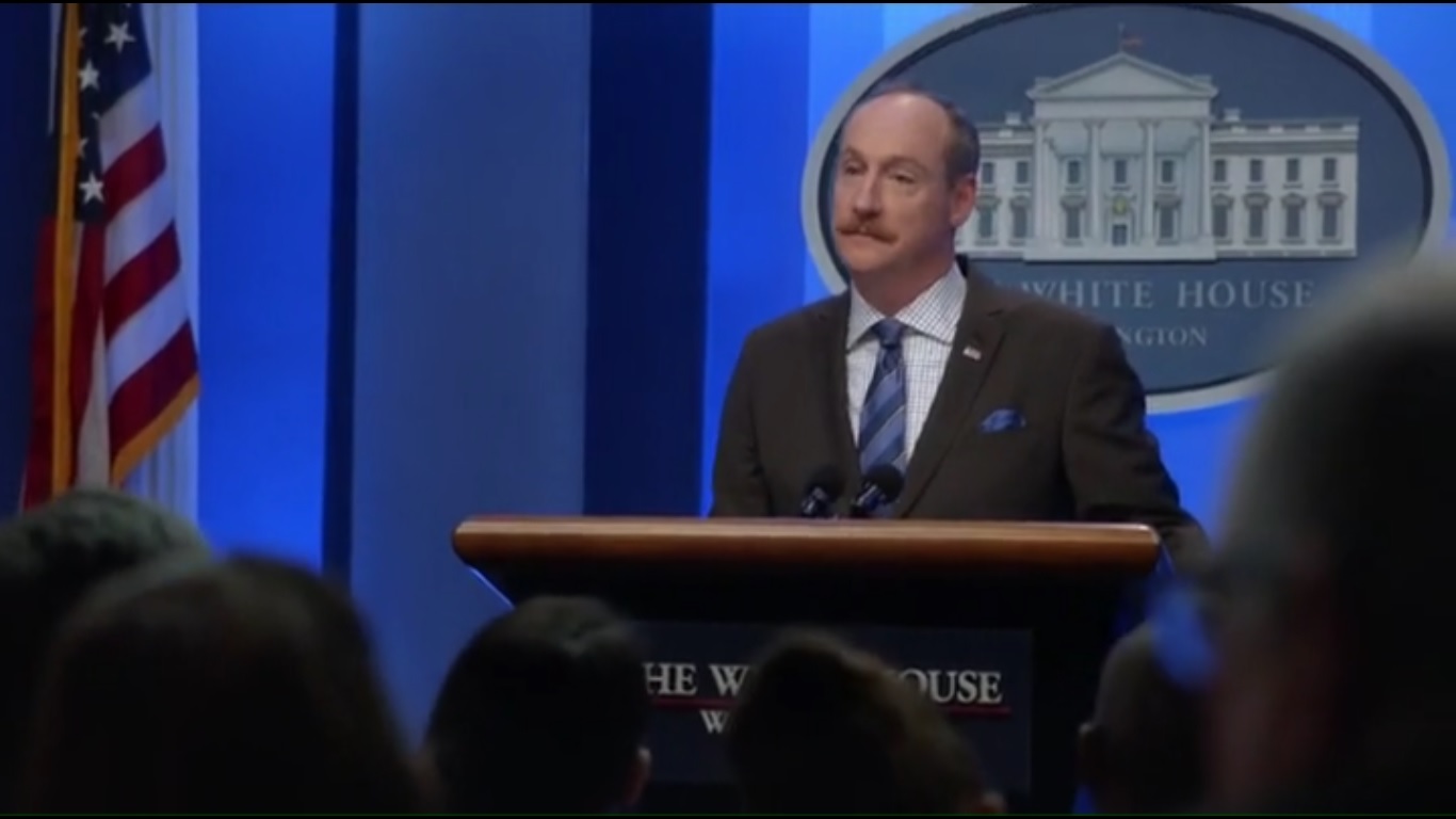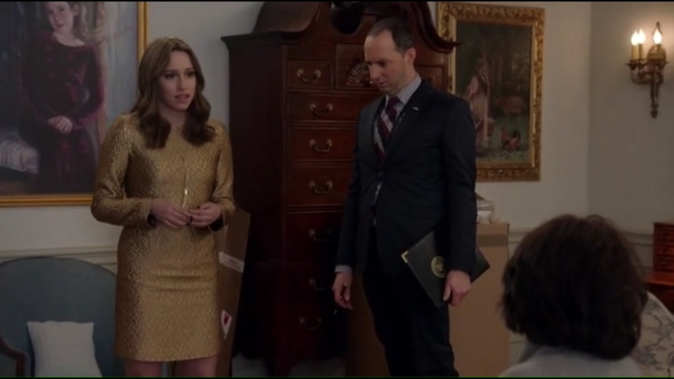 Laura Montez meets with Doyle, Selina, and other representatives, and talk about the weather, which could drop low for tonight’s inaugural ball. Selina ruins the moment by bringing up Laura’s heritage, which is questionable, to say the least. The team, meanwhile, turns in their White House badges, but Mike can’t find his. Shocker.